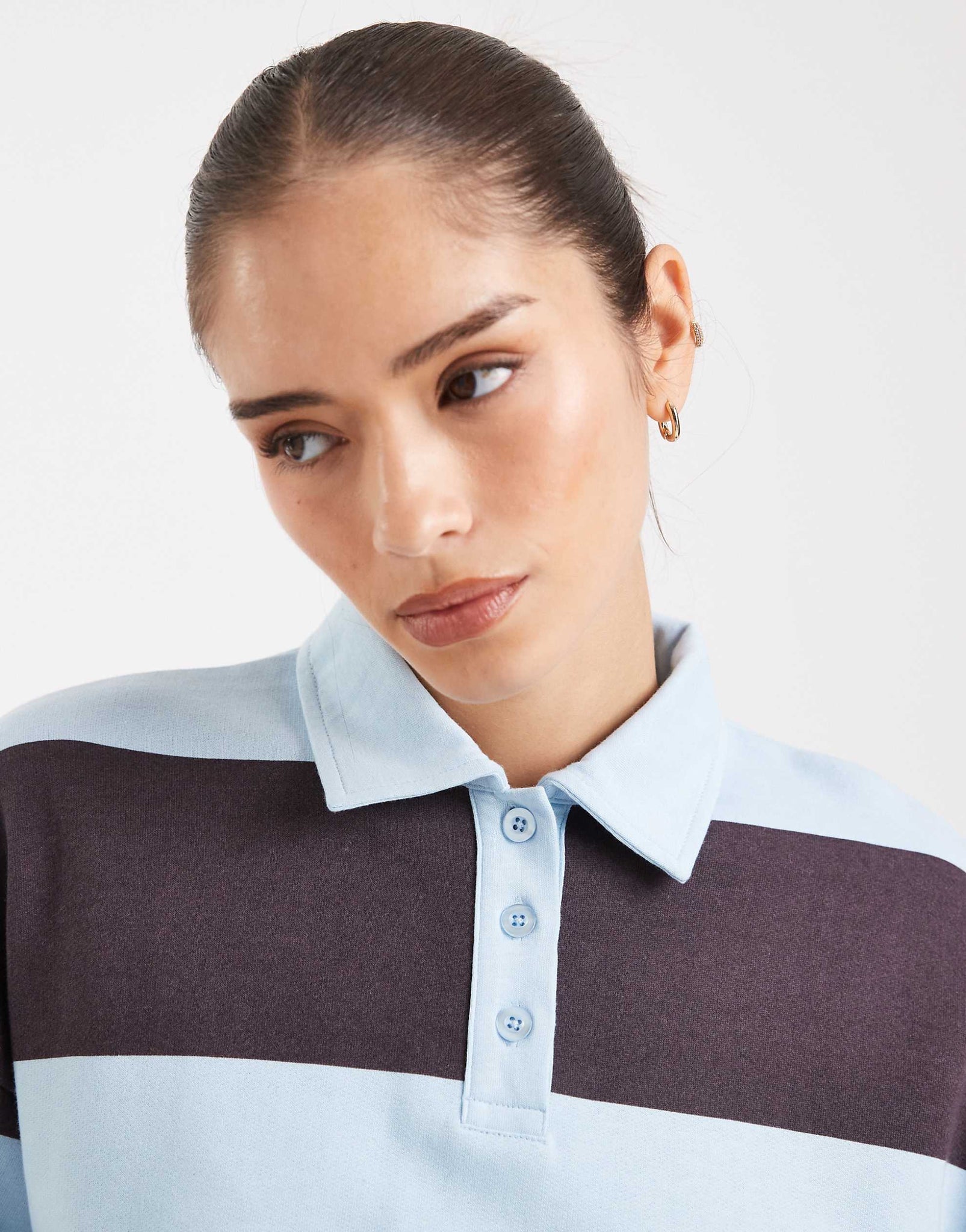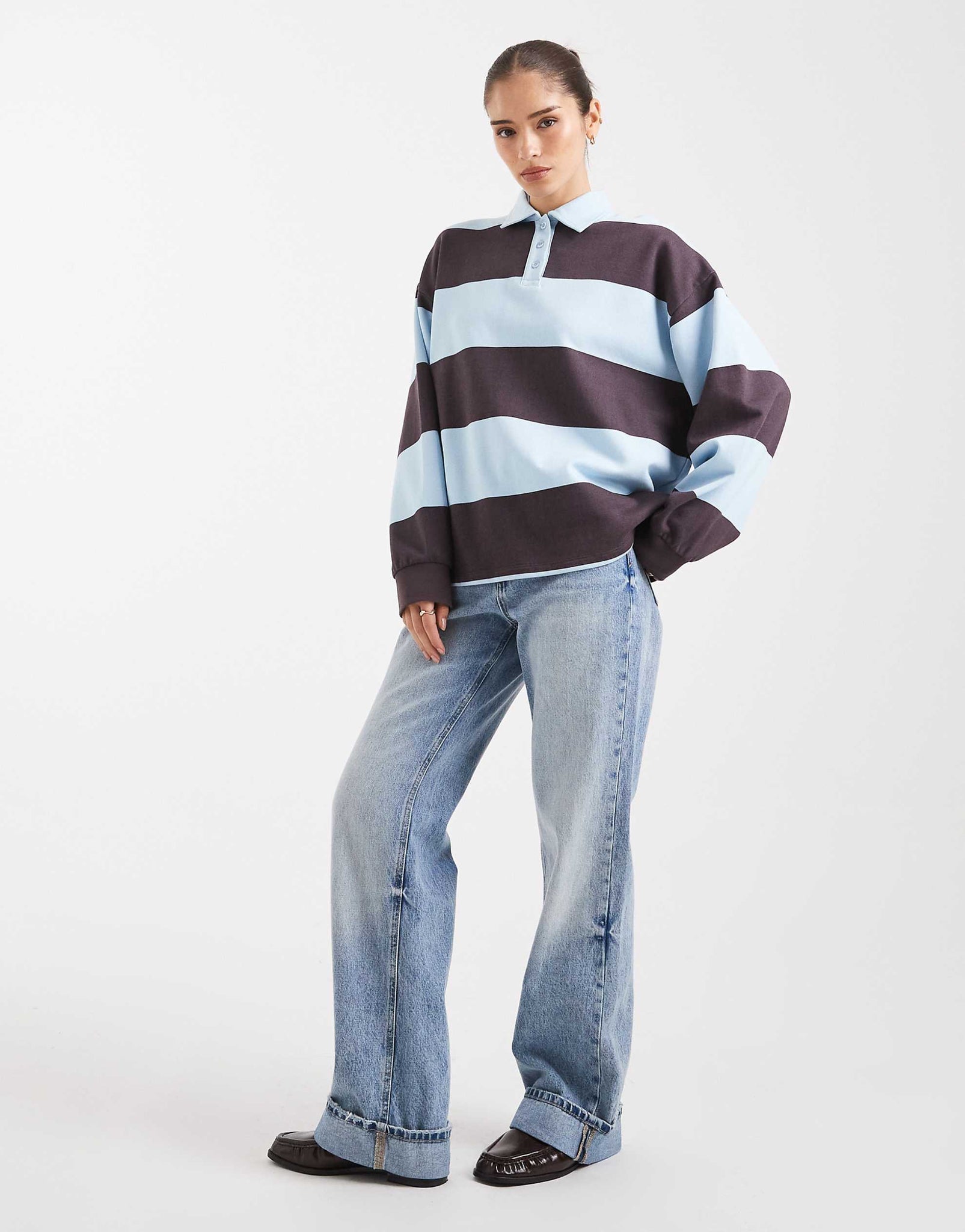 4th & Reckless cotton rich rugby polo collared sweatshirt chocolate blue