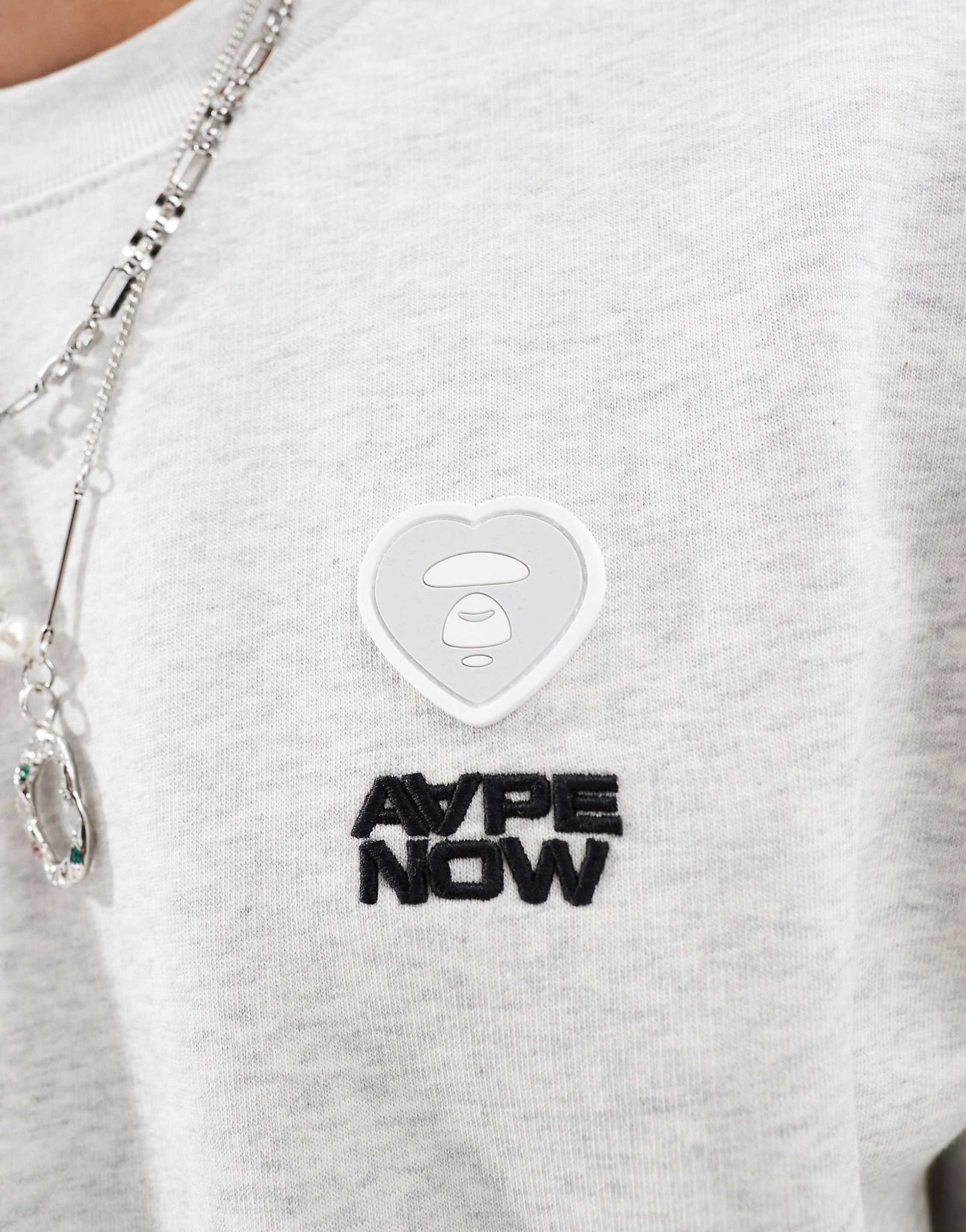 Aape By A Bathing Ape heart crew neck sweat grey marl