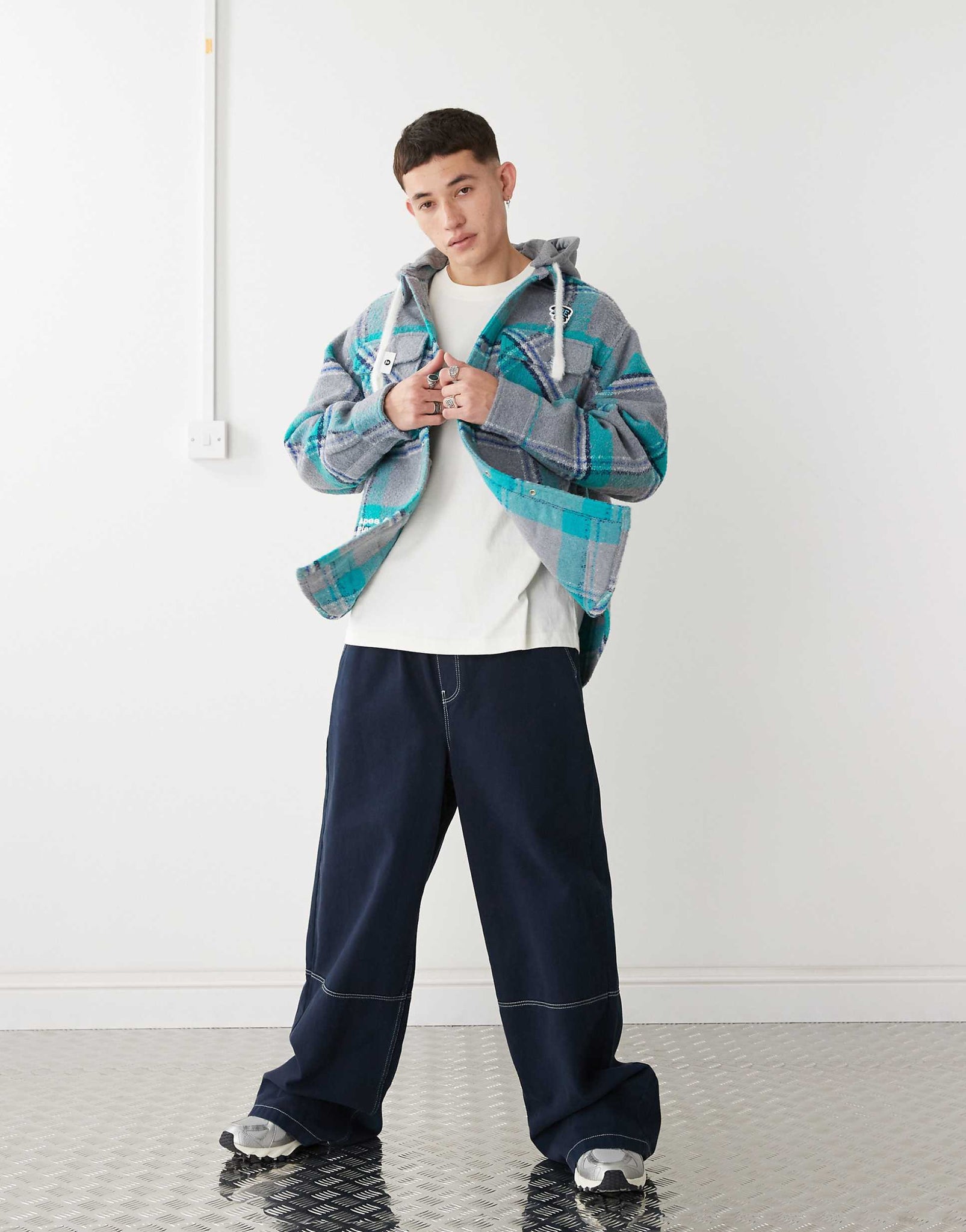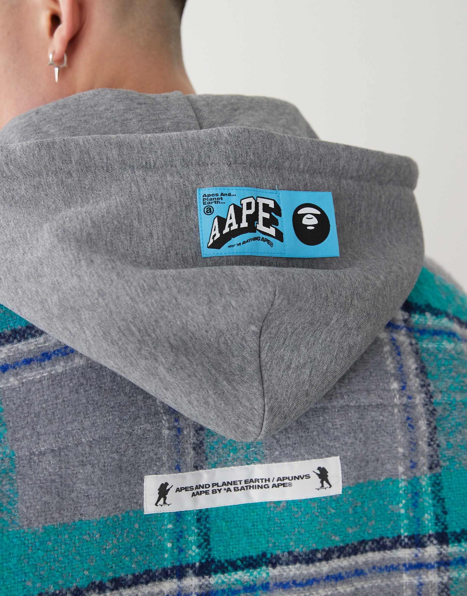 Aape By A Bathing Ape hoodie shacket blue grey check