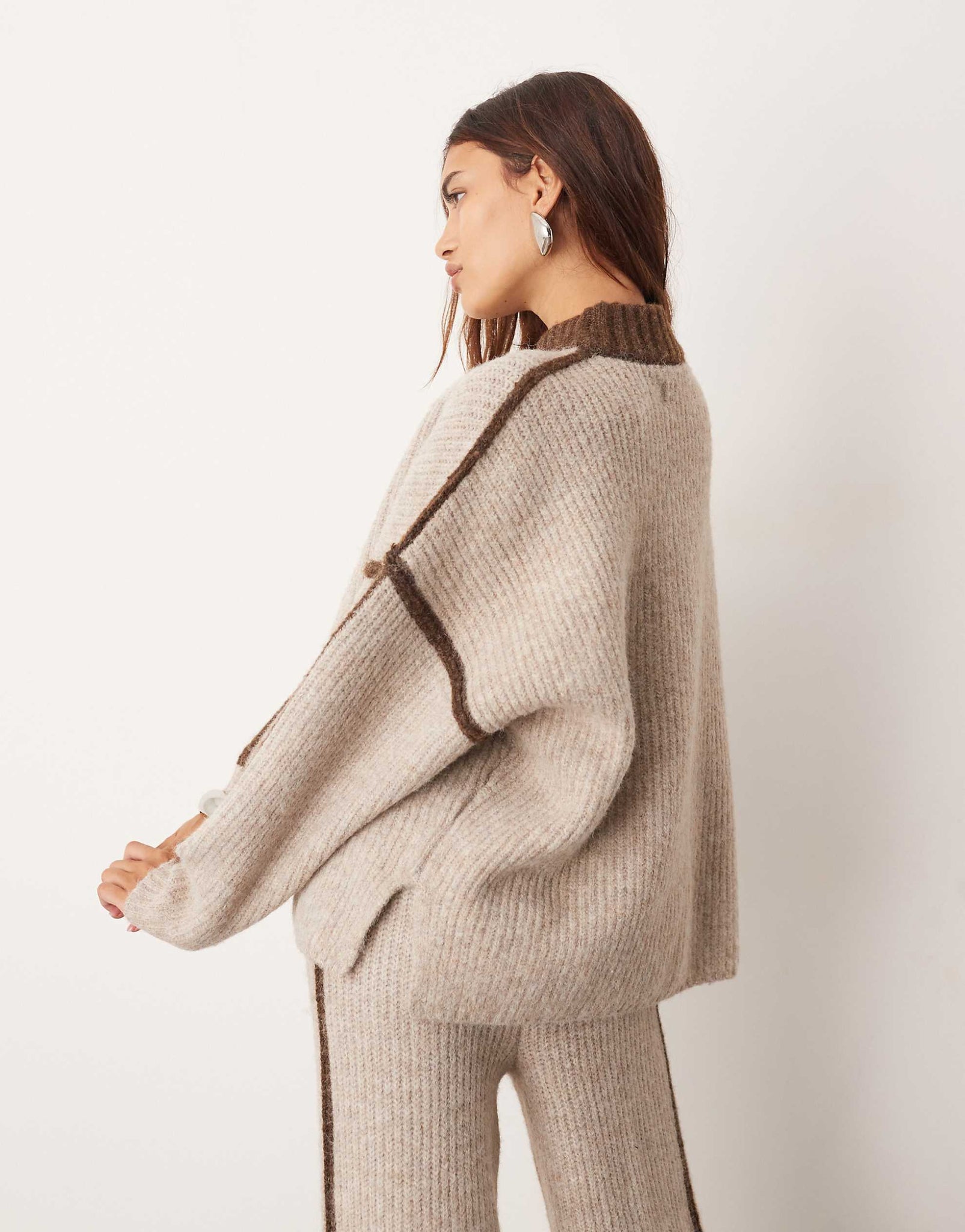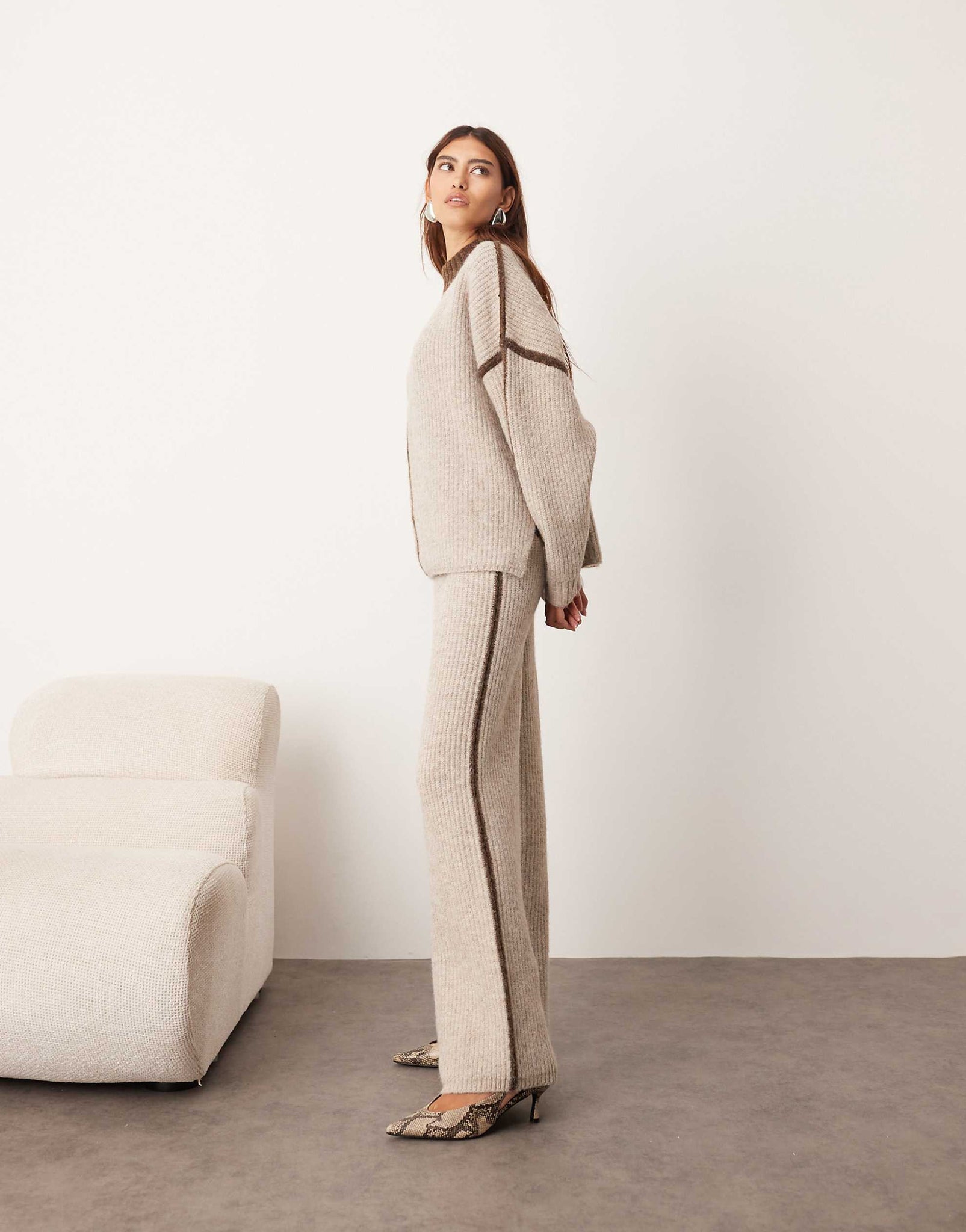 ARRANGE thick rib knit high neck jumper trouser oatmeal chocolate