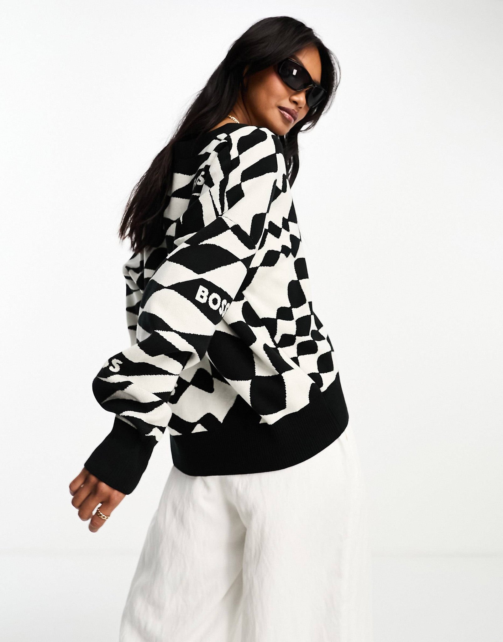 BOSS Falentissa cardigan black white