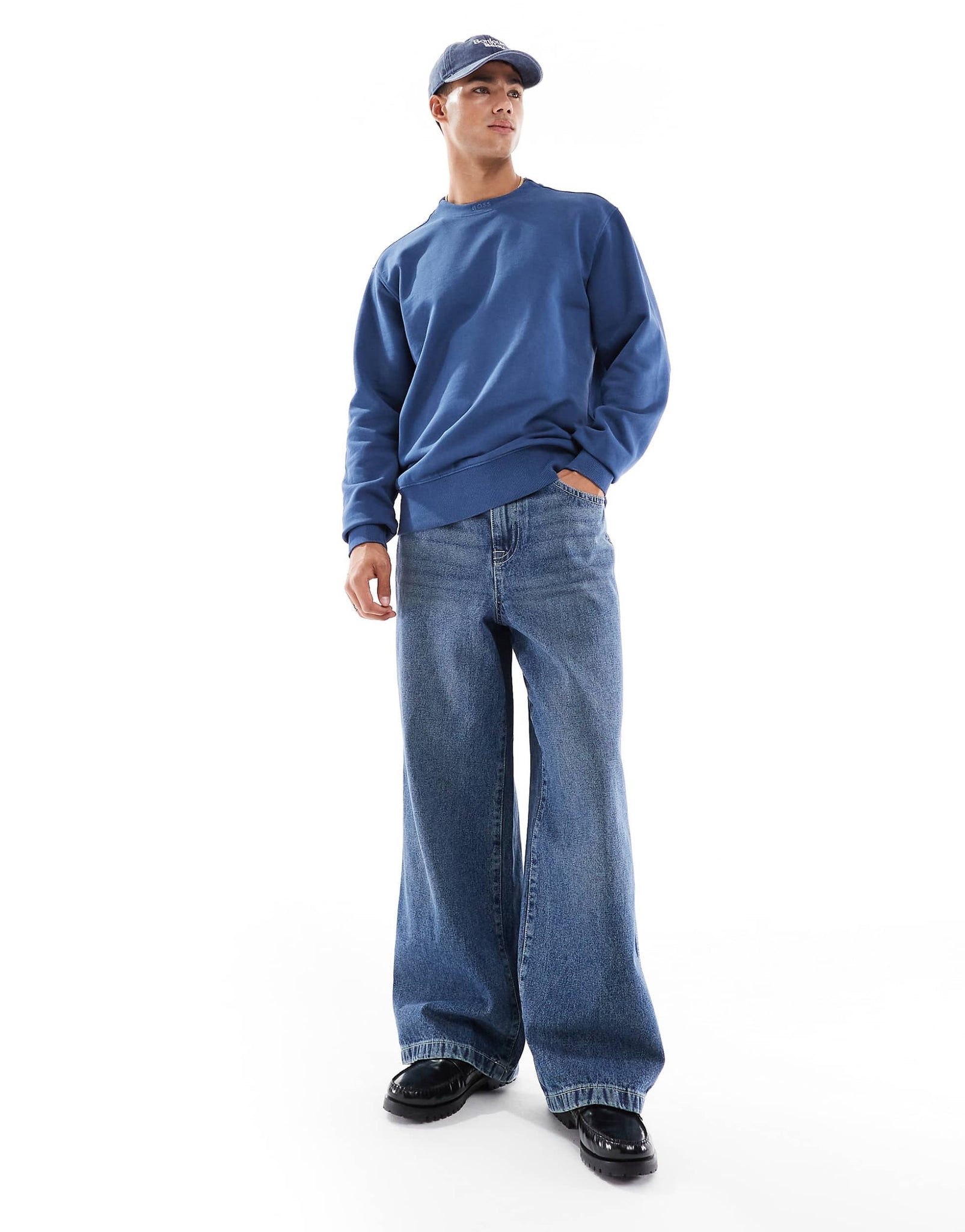 BOSS Orange We_Dye neck logo relaxed fit sweatshirt dark blue
