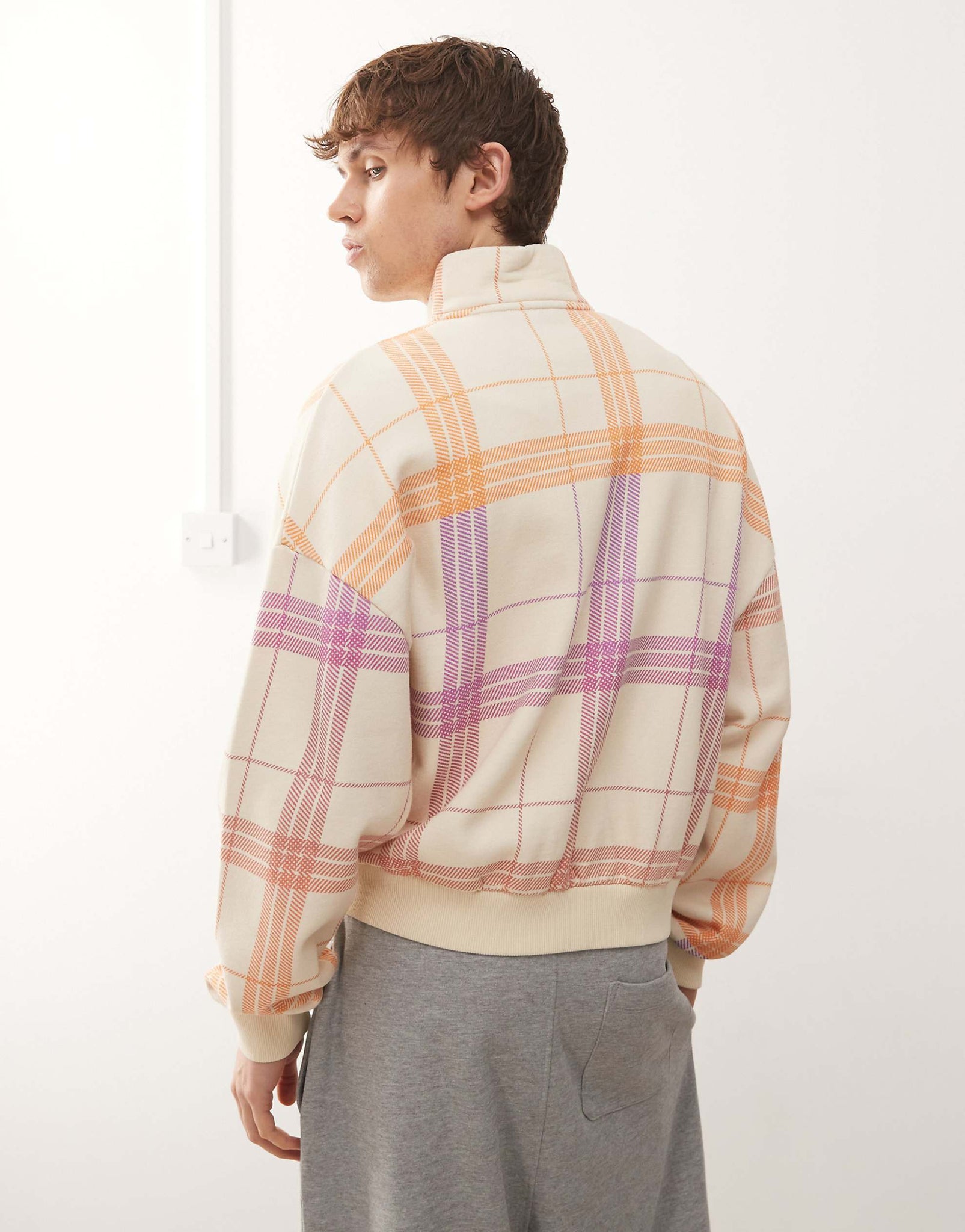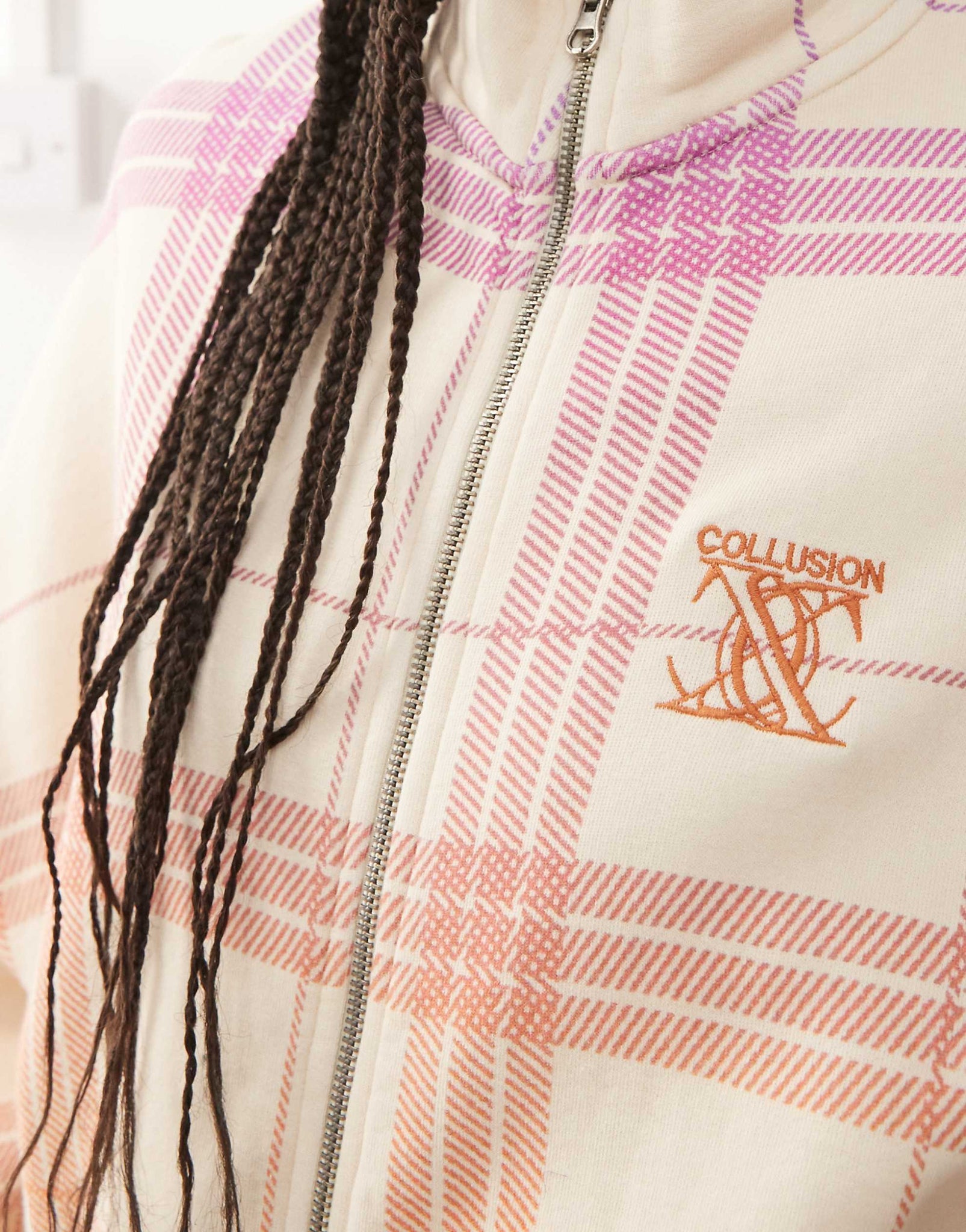 COLLUSION Unisex boxy track sweat jacket check