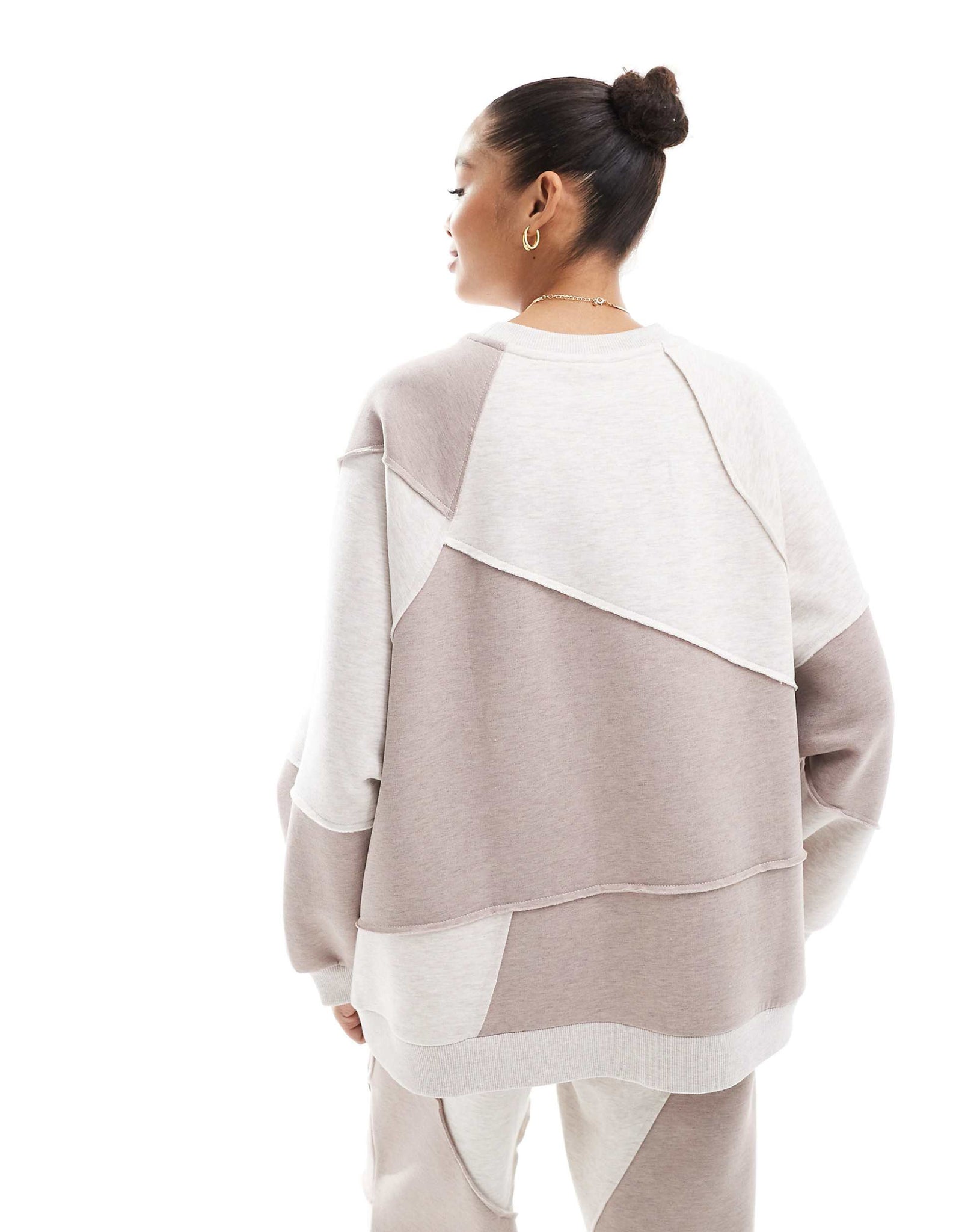 DESIGN co-ord oversized sweatshirt patchwork detail oatmeal mix