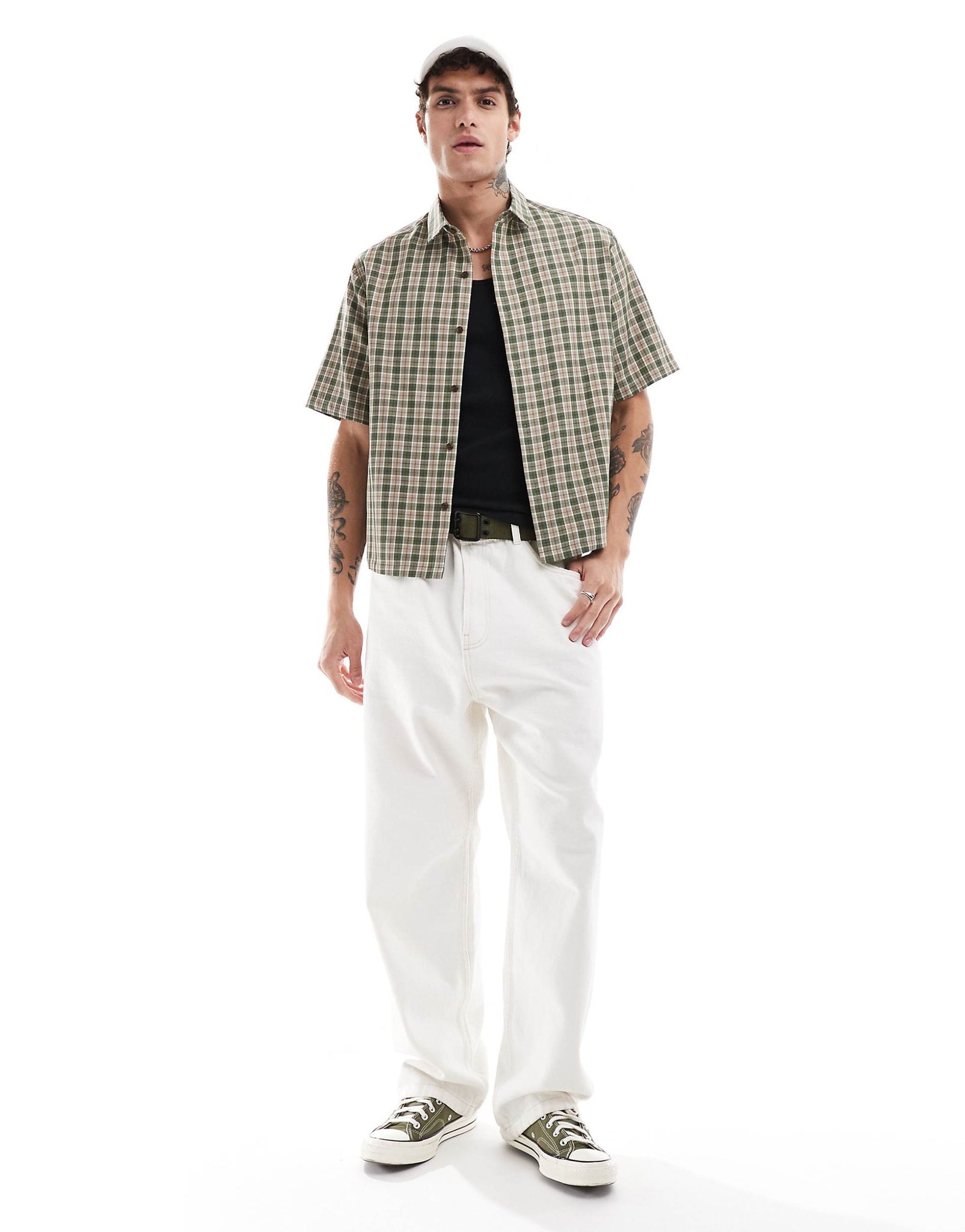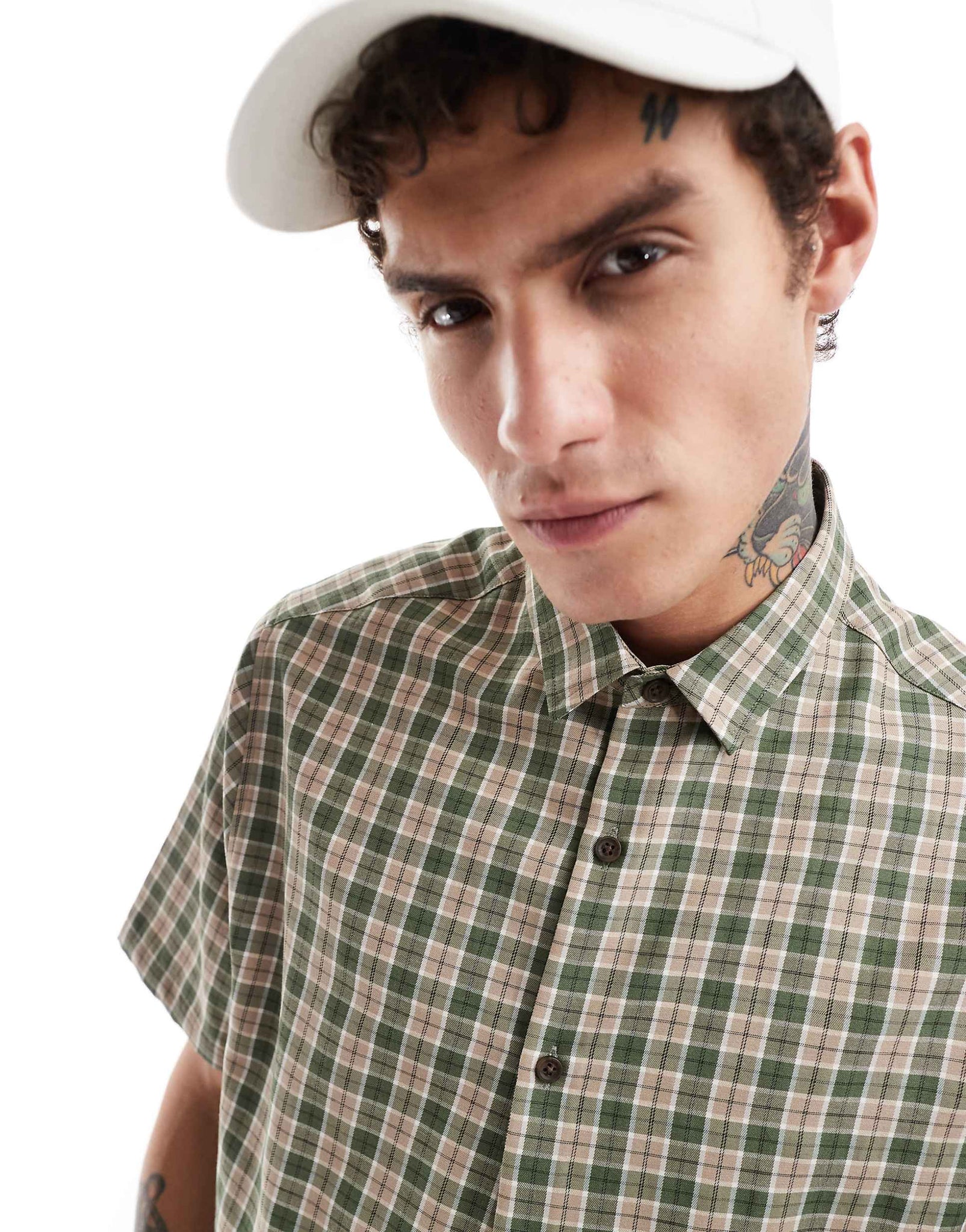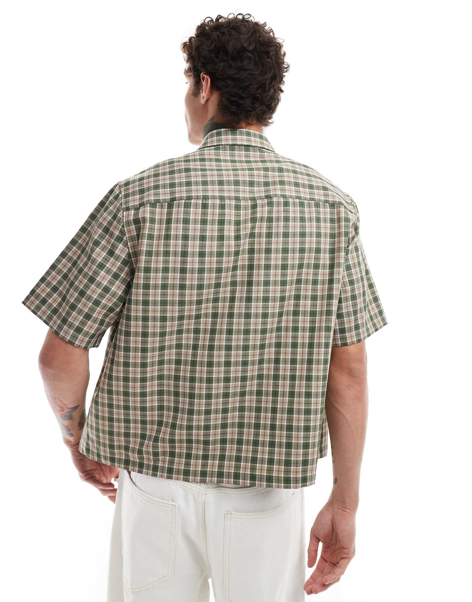 DESIGN boxy relaxed shirt stone olive dad check