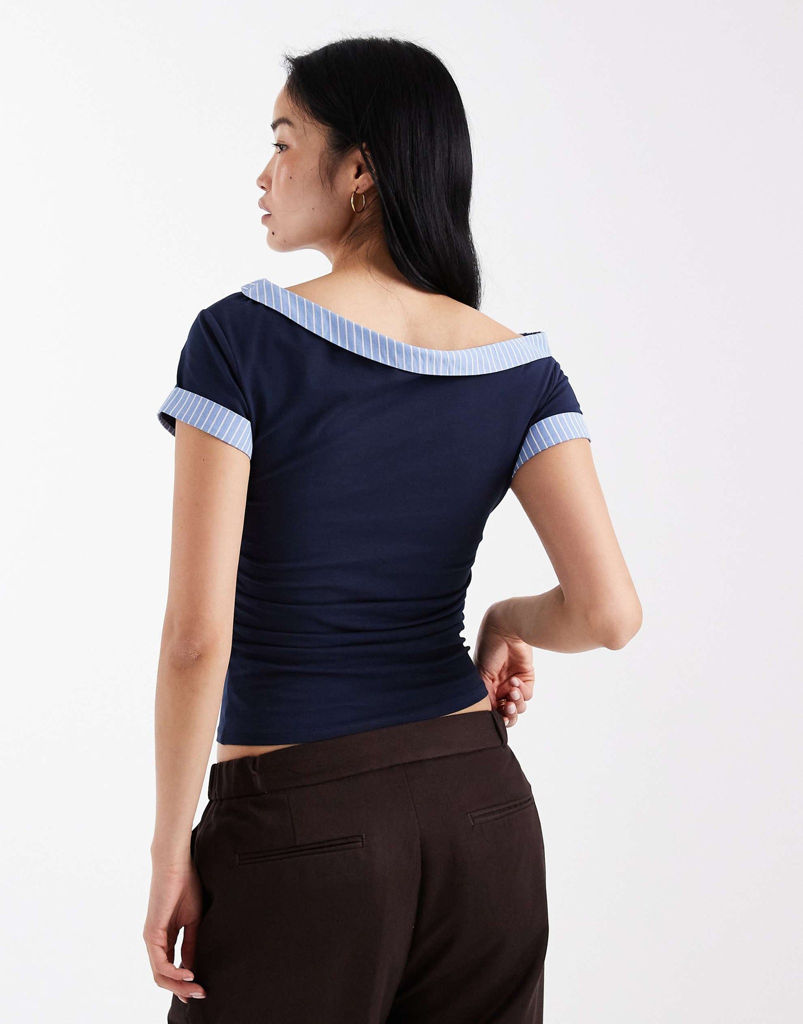 DESIGN hybrid fallen shoulder striped poplin hem top navy