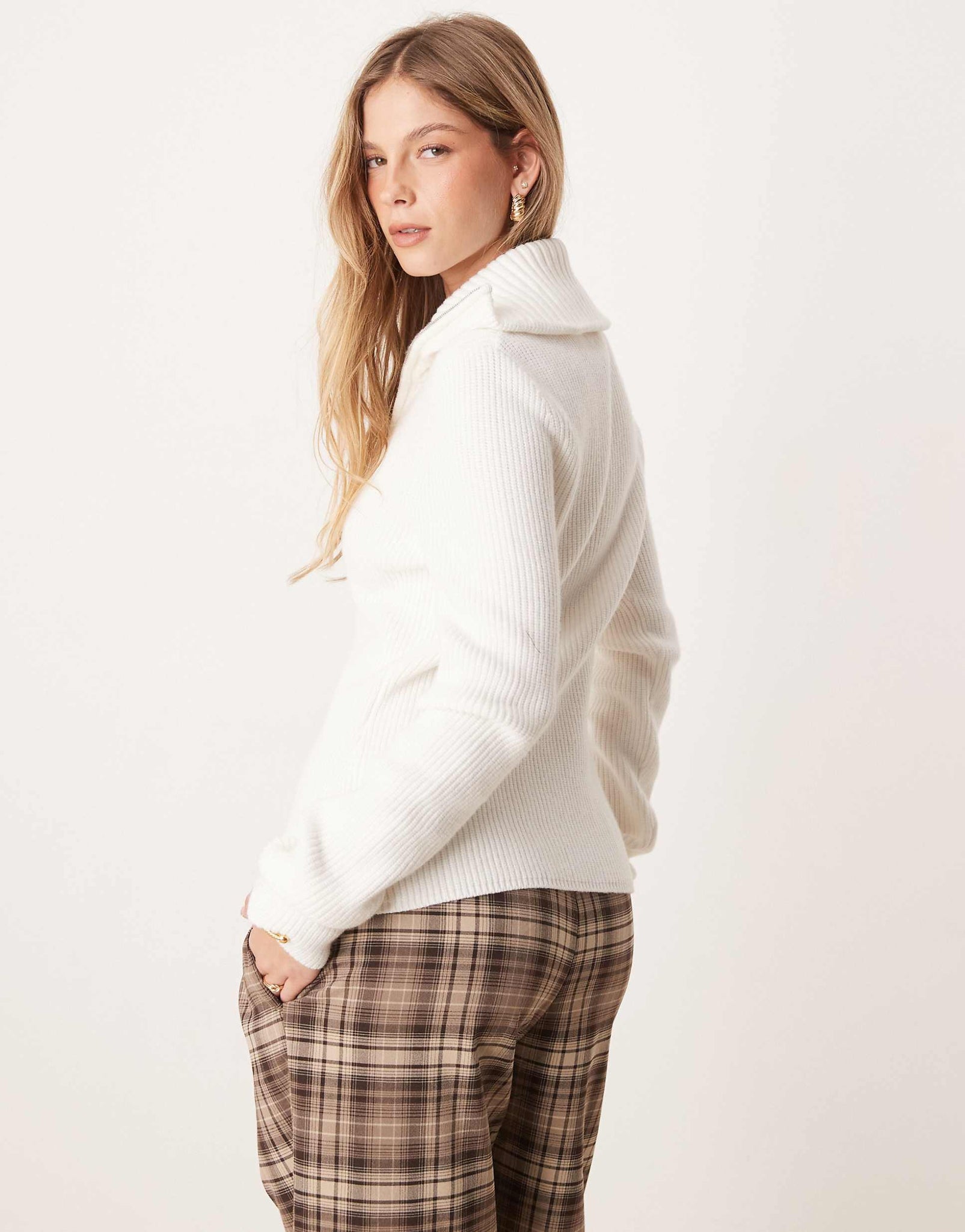 DESIGN knitted zip through collar cardigan cream