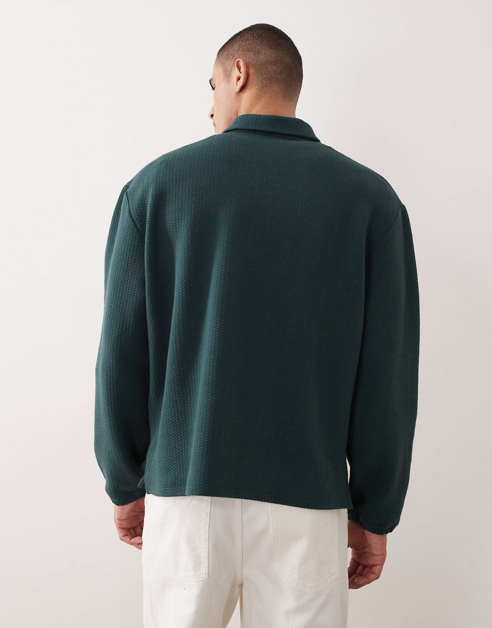 DESIGN oversized half zip polo sweatshirt dark green bubble texture