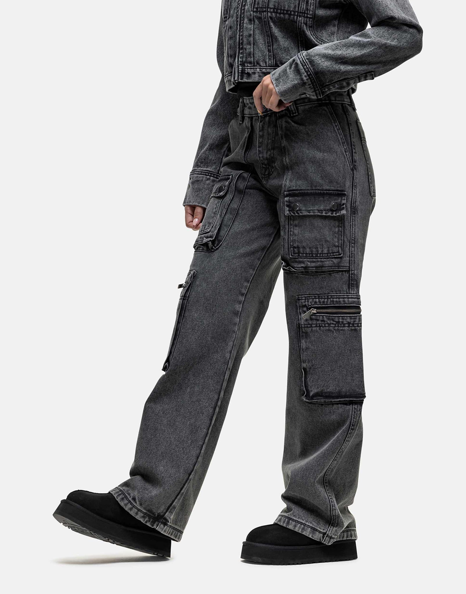 Good For Nothing co-ord jeans & denim jacket black acid wash