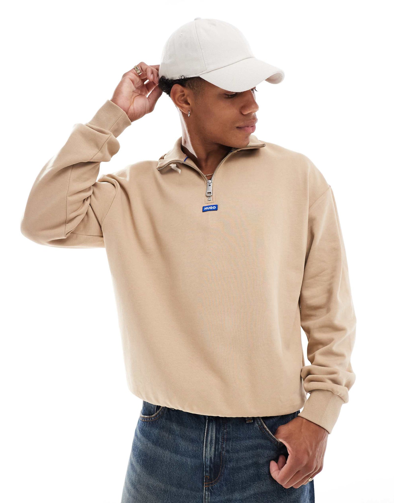 HUGO Blue neeler half zip sweatshirt beige