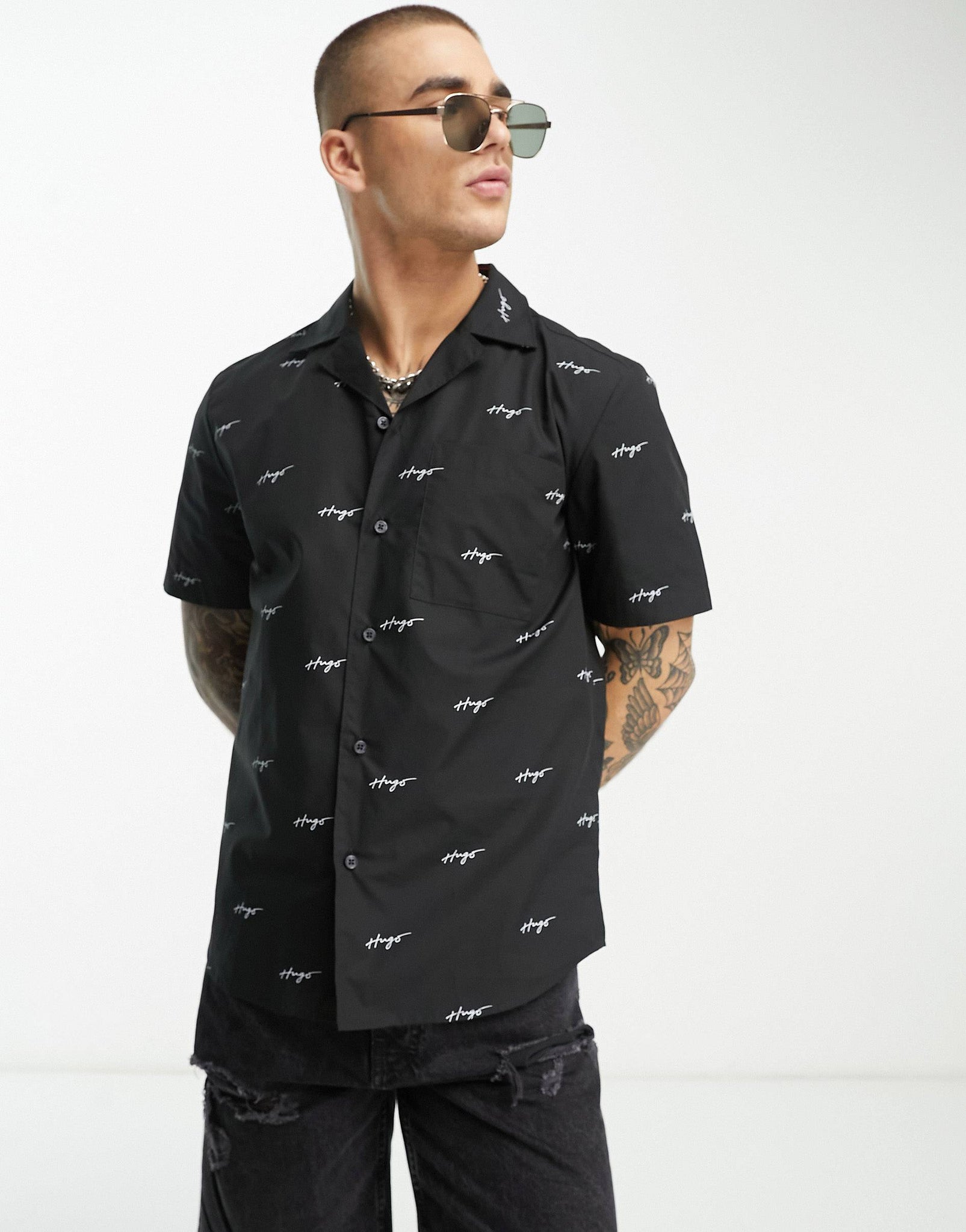 HUGO Ellino relaxed fit short sleeve shirt black over script
