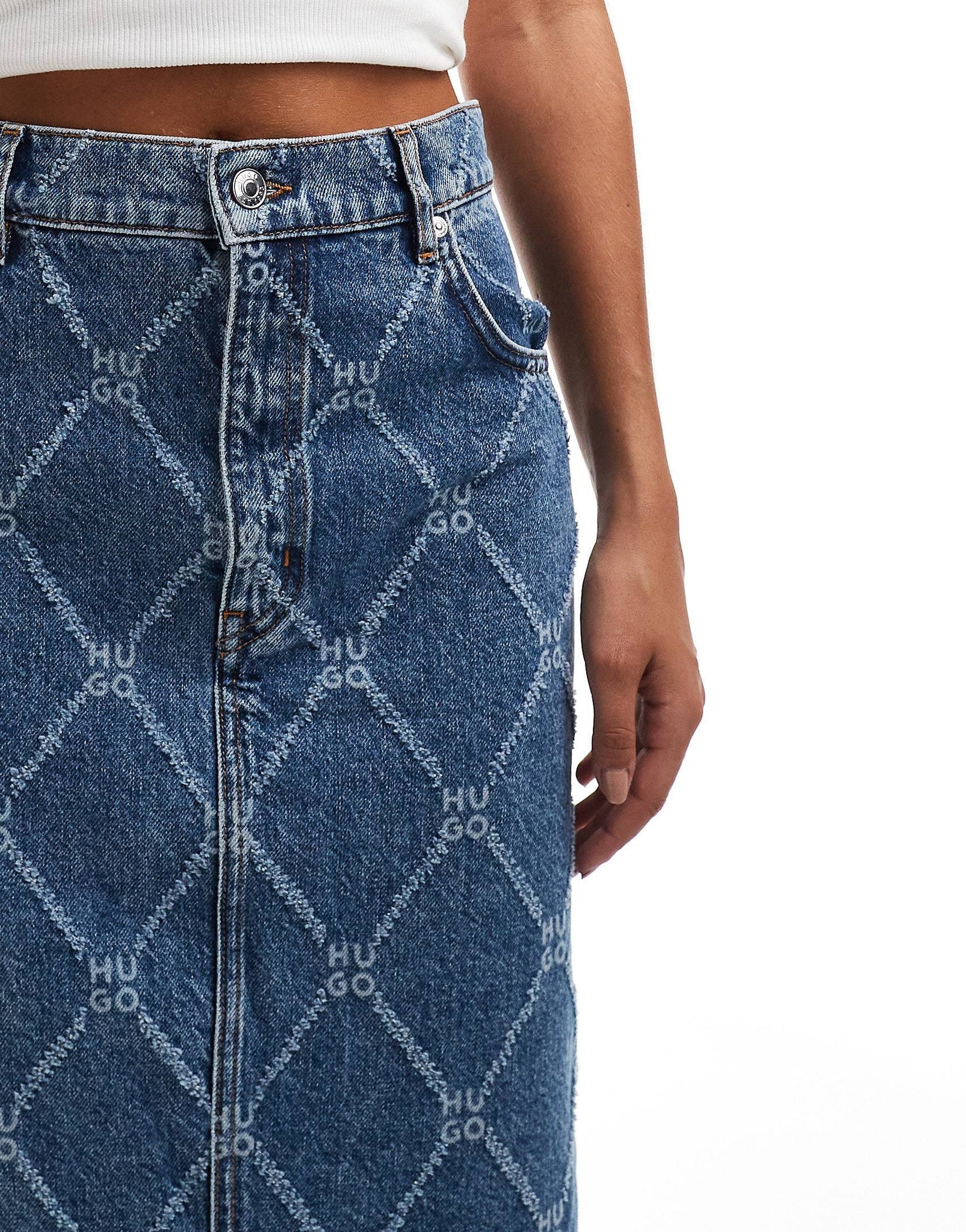 HUGO Red denim maxi skirt mid wash