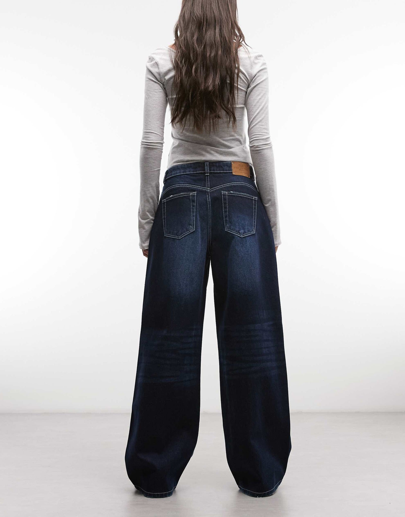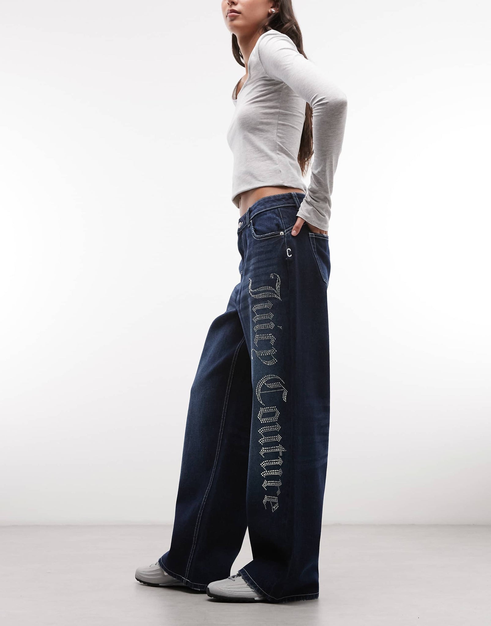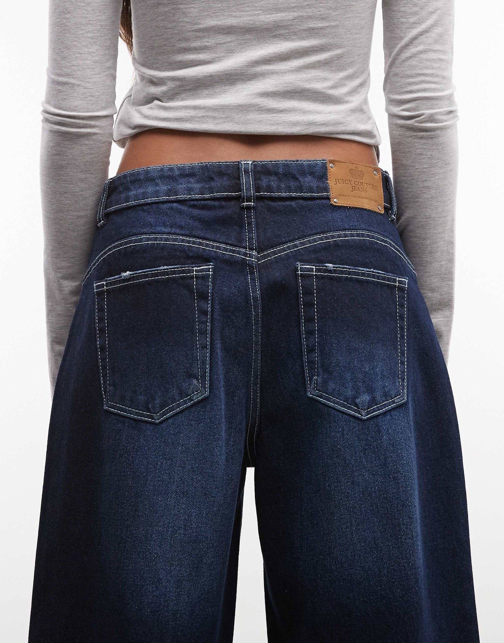 Juicy Couture mid rise wide leg jean diamante midwash blue