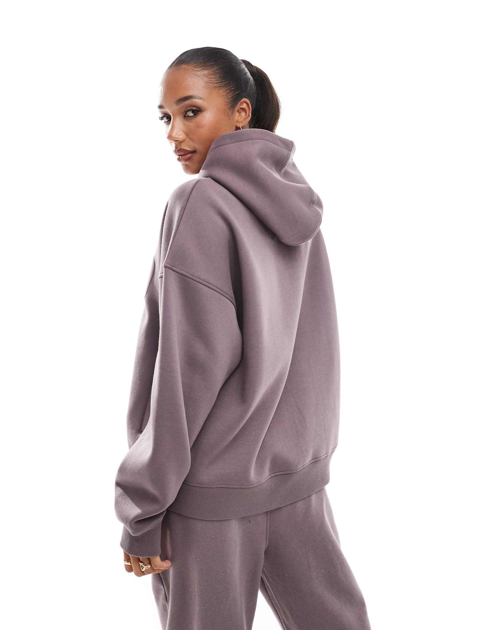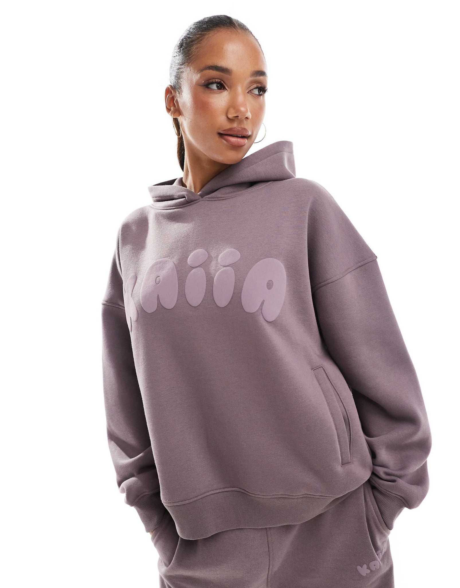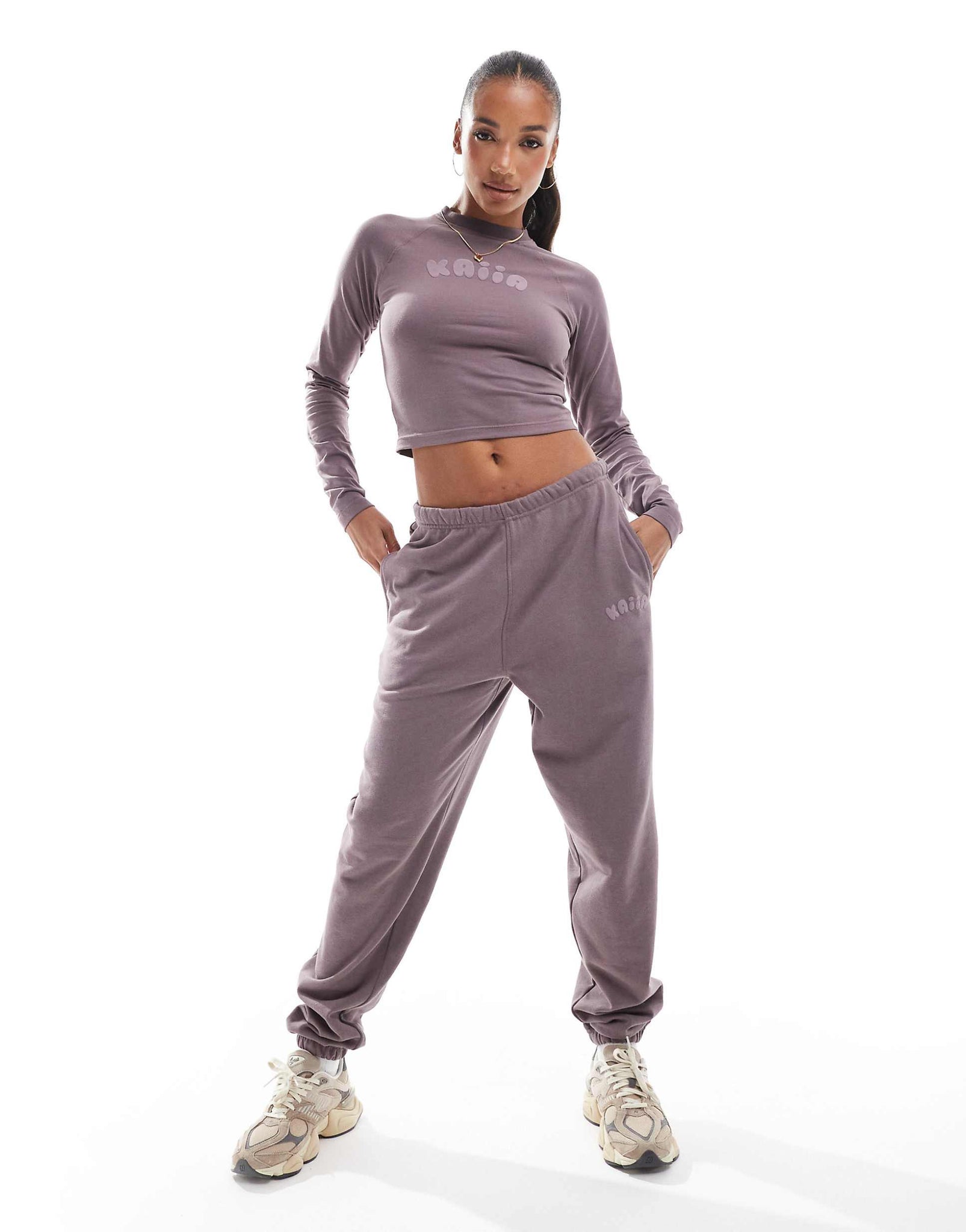 Kaiia cropped long sleeve top, hoodie & joggers co-ord purple