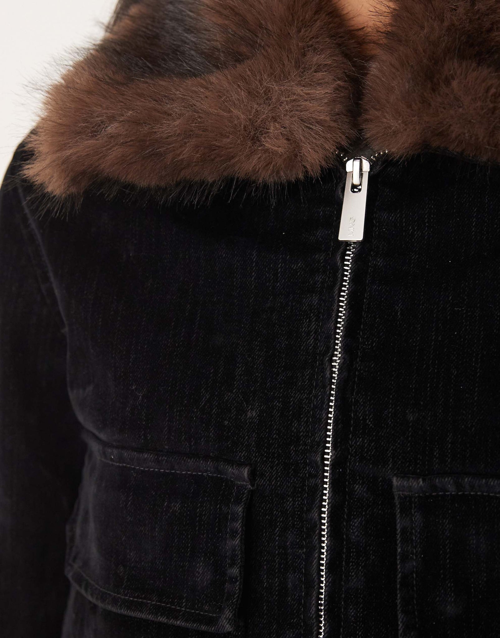 Mango denim jacket with faux fur collar black