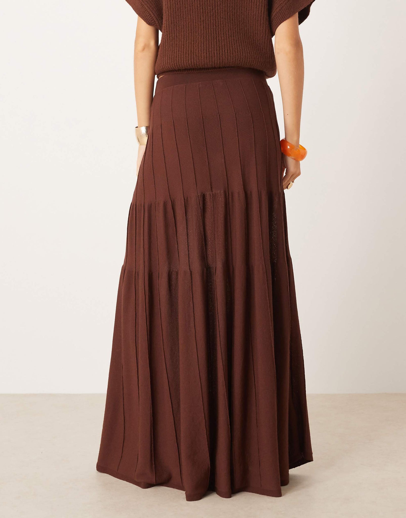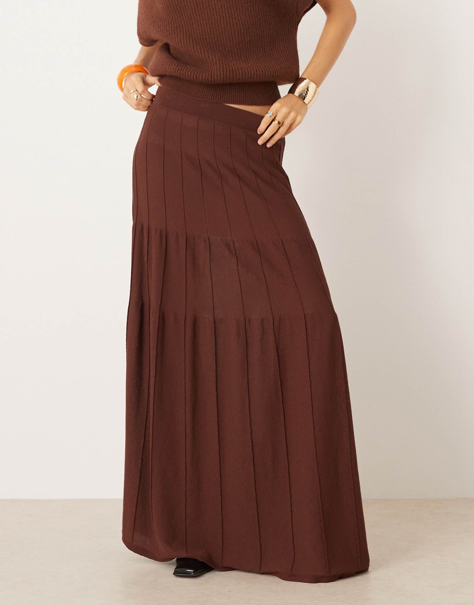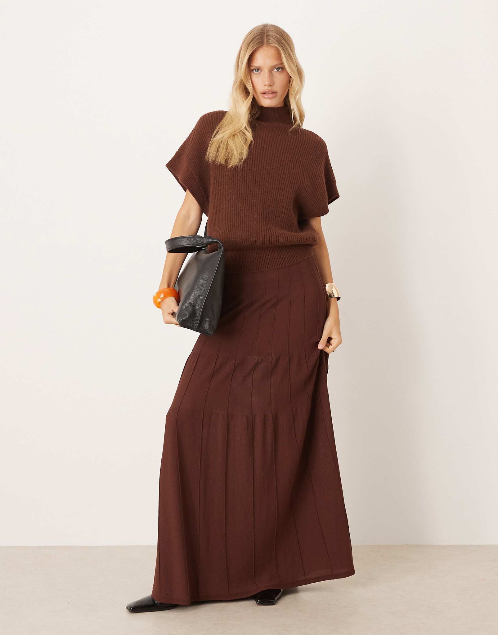 Mango high neck short sleeve knitted co-ord top & skirt brown