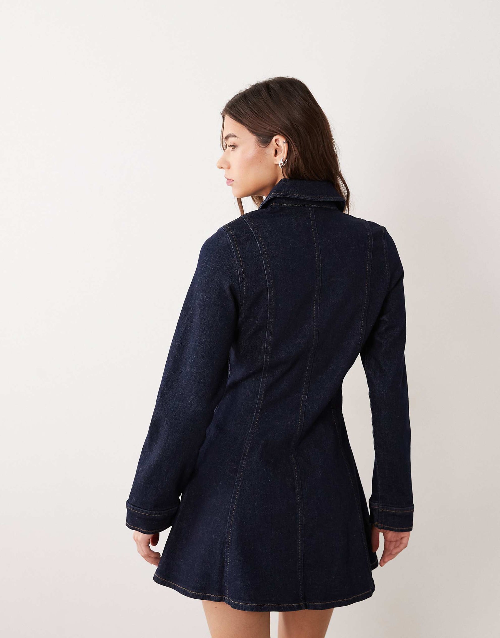 Miss Selfridge denim button through fit flare mini dress indigo
