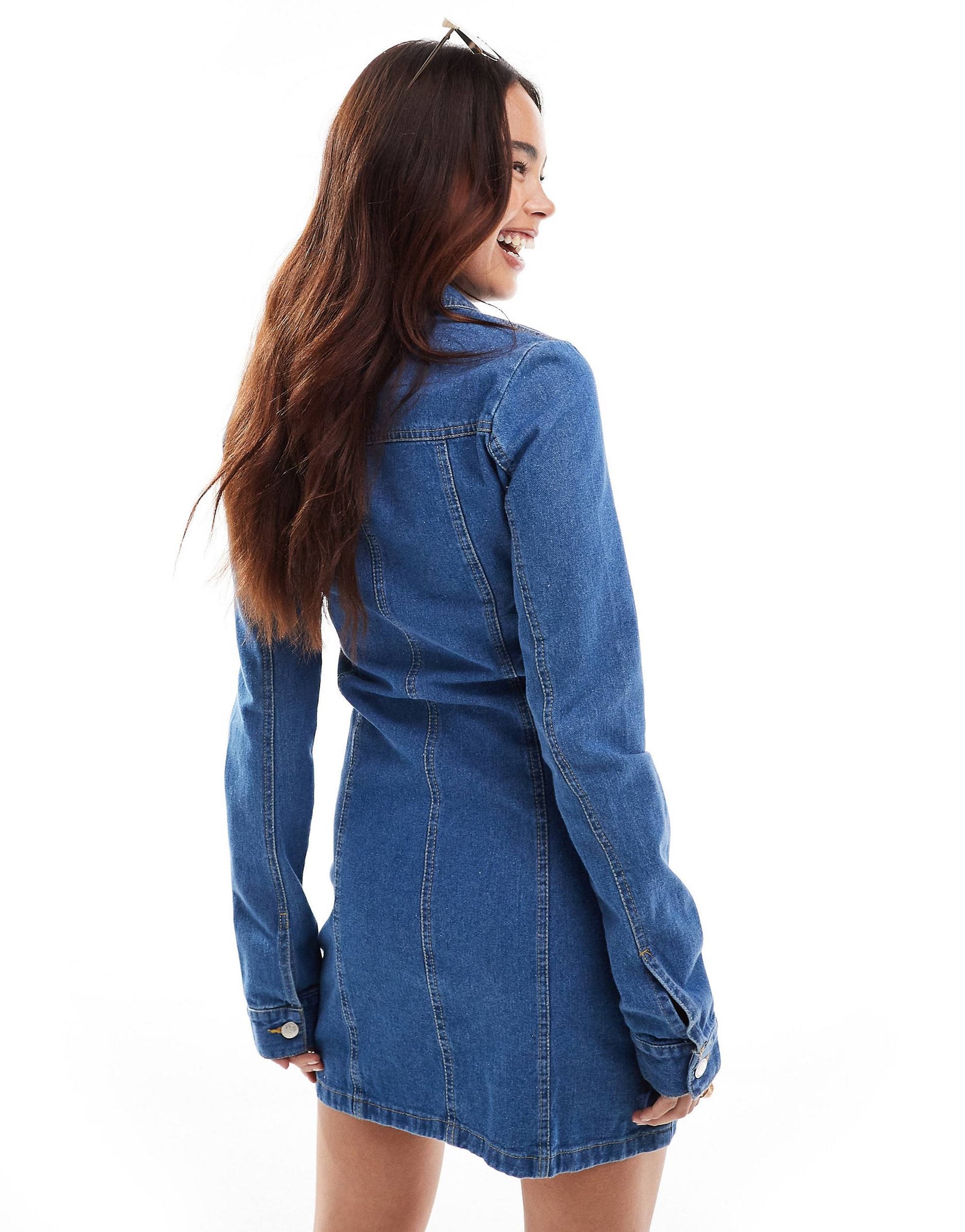 Miss Selfridge denim zip detail shirt dress mid blue wash