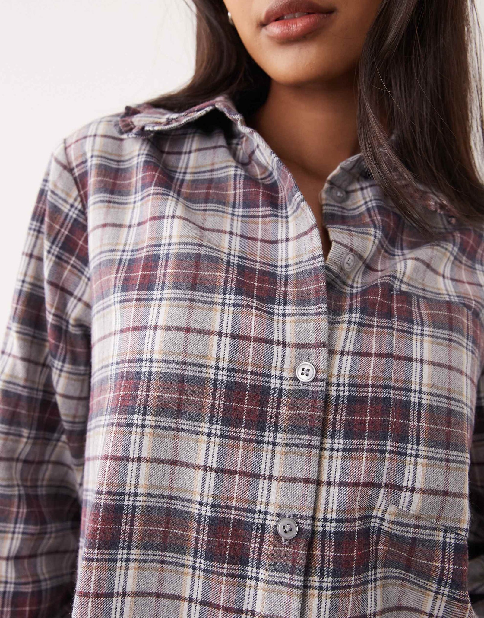 Miss Selfridge ruffle trim oversized shirt check