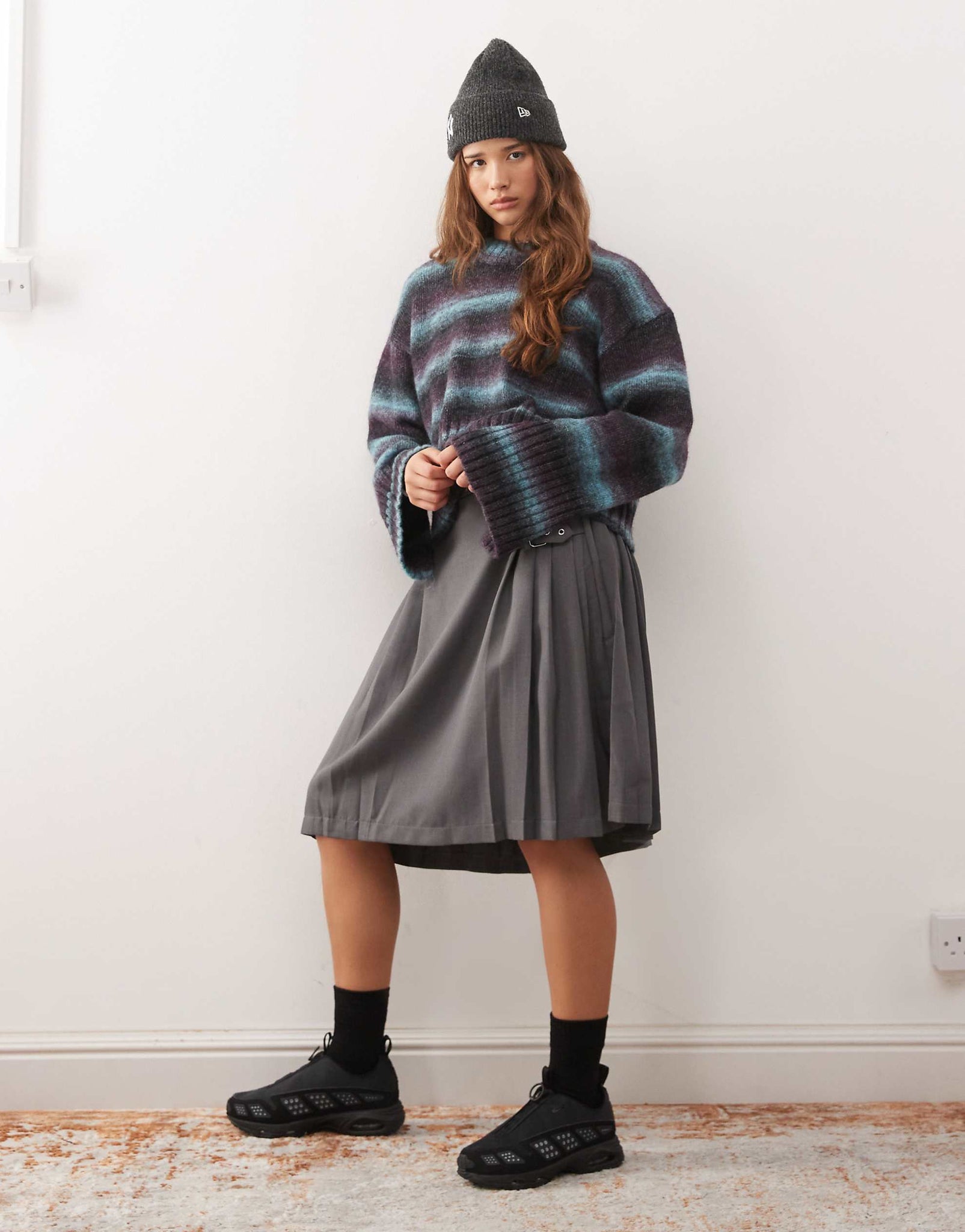 Monki boxy jumper with faded stripe blue