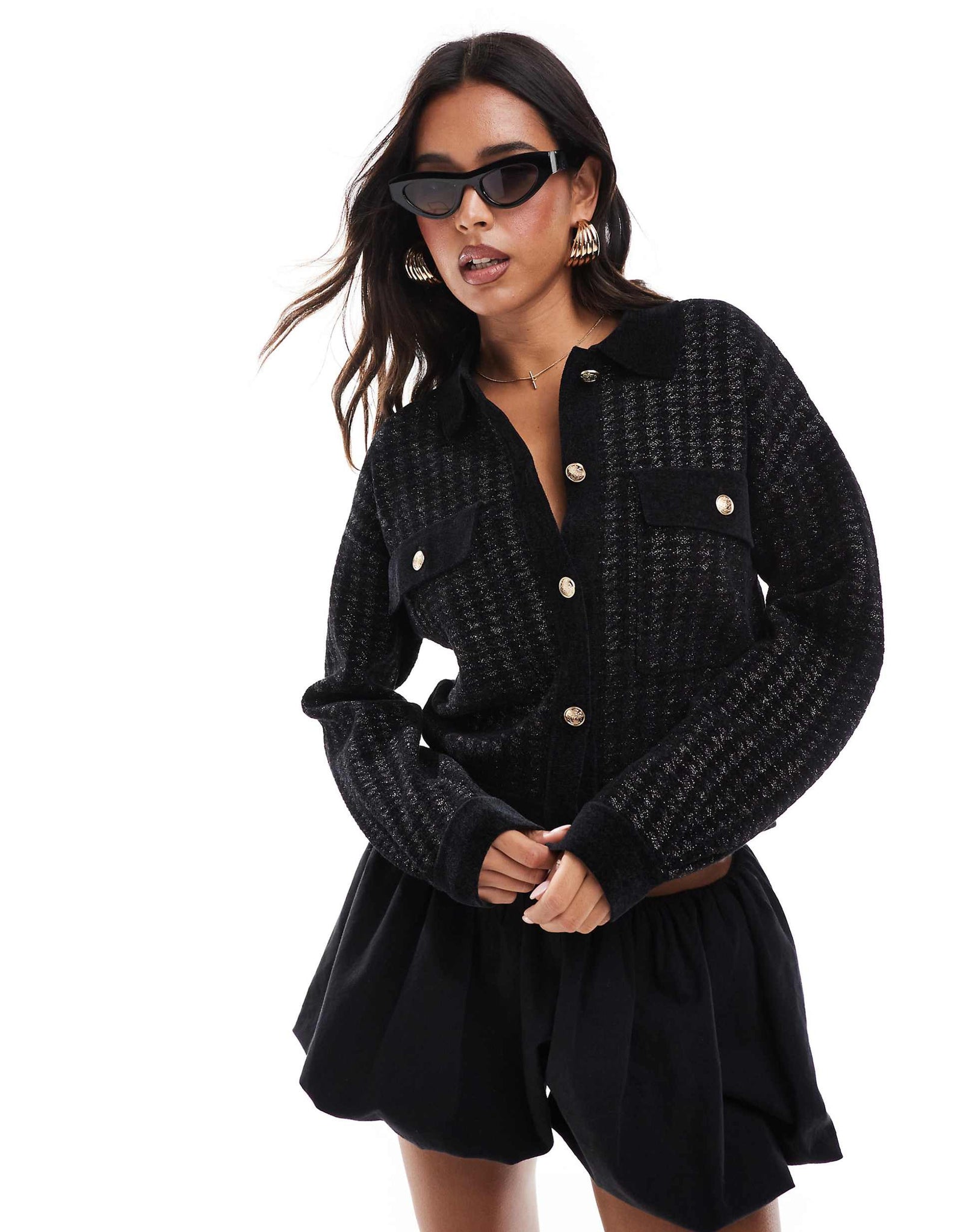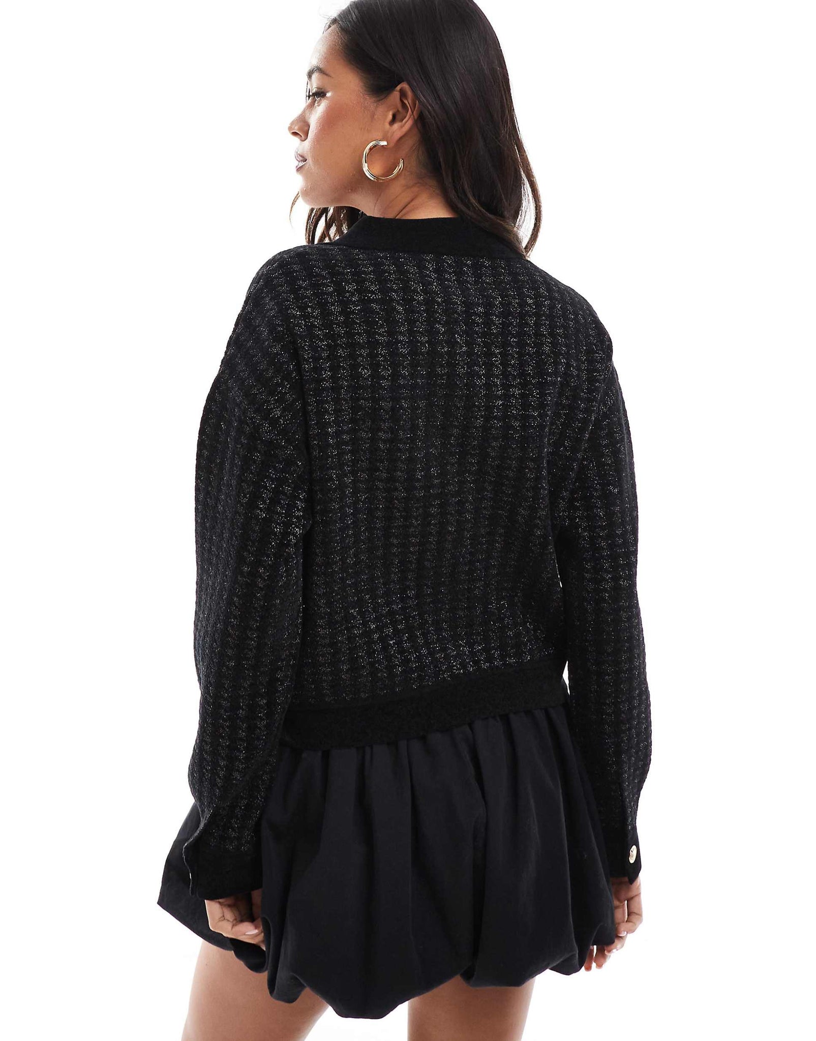 Morgan knit gold button cardigan black dogtooth