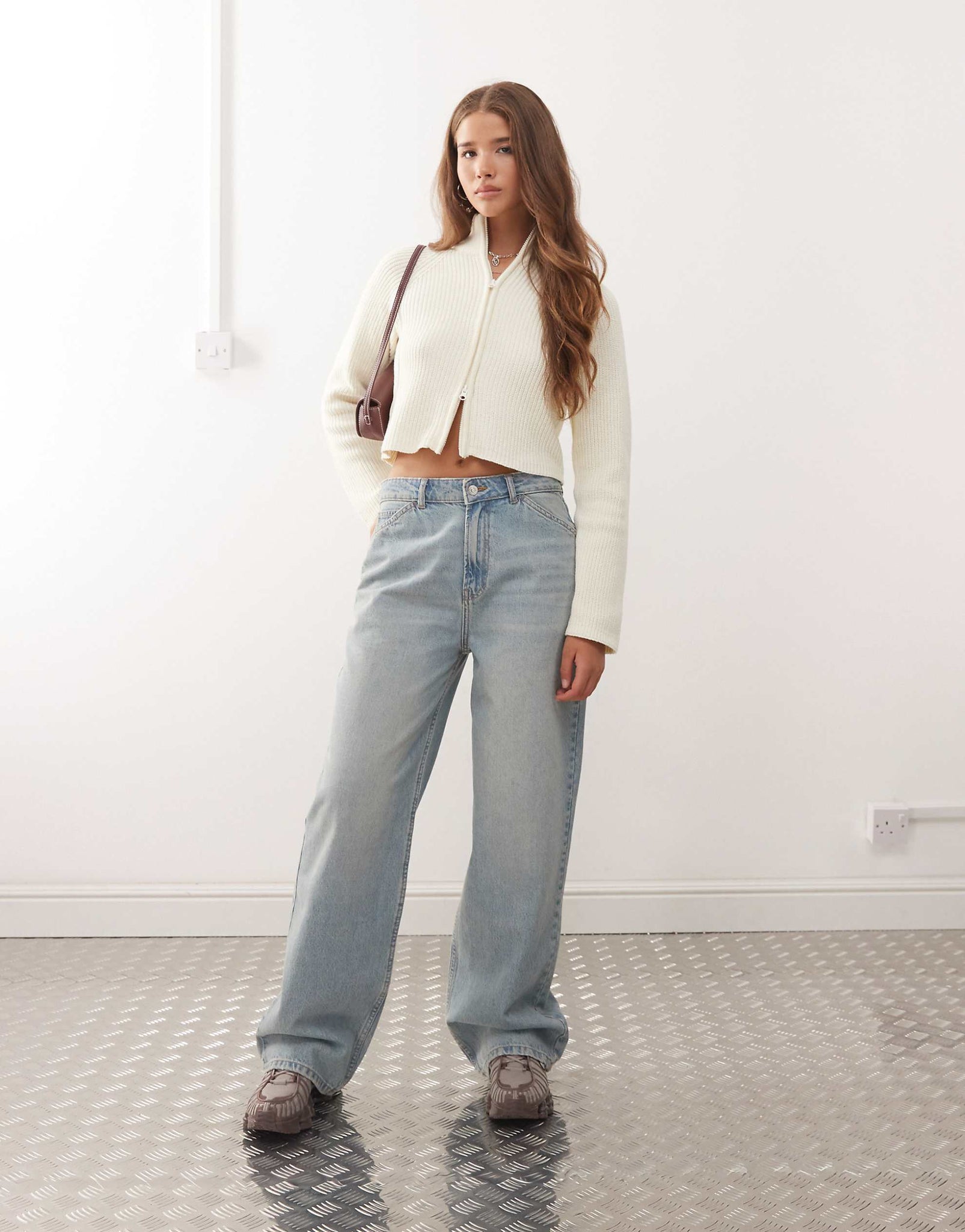 Noisy May high neck full zip through cardigan cream