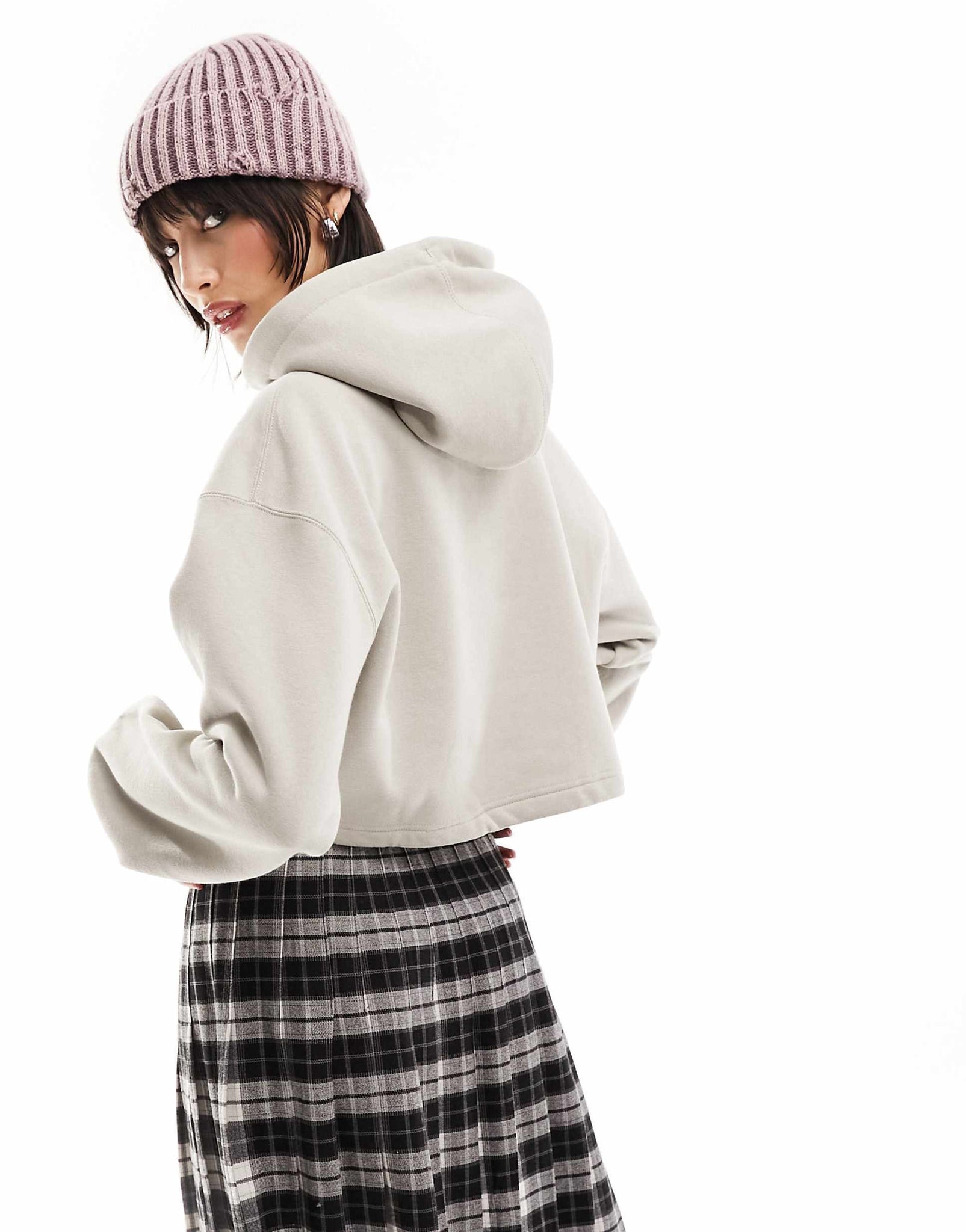 Obey bold logo cropped hoodie beige