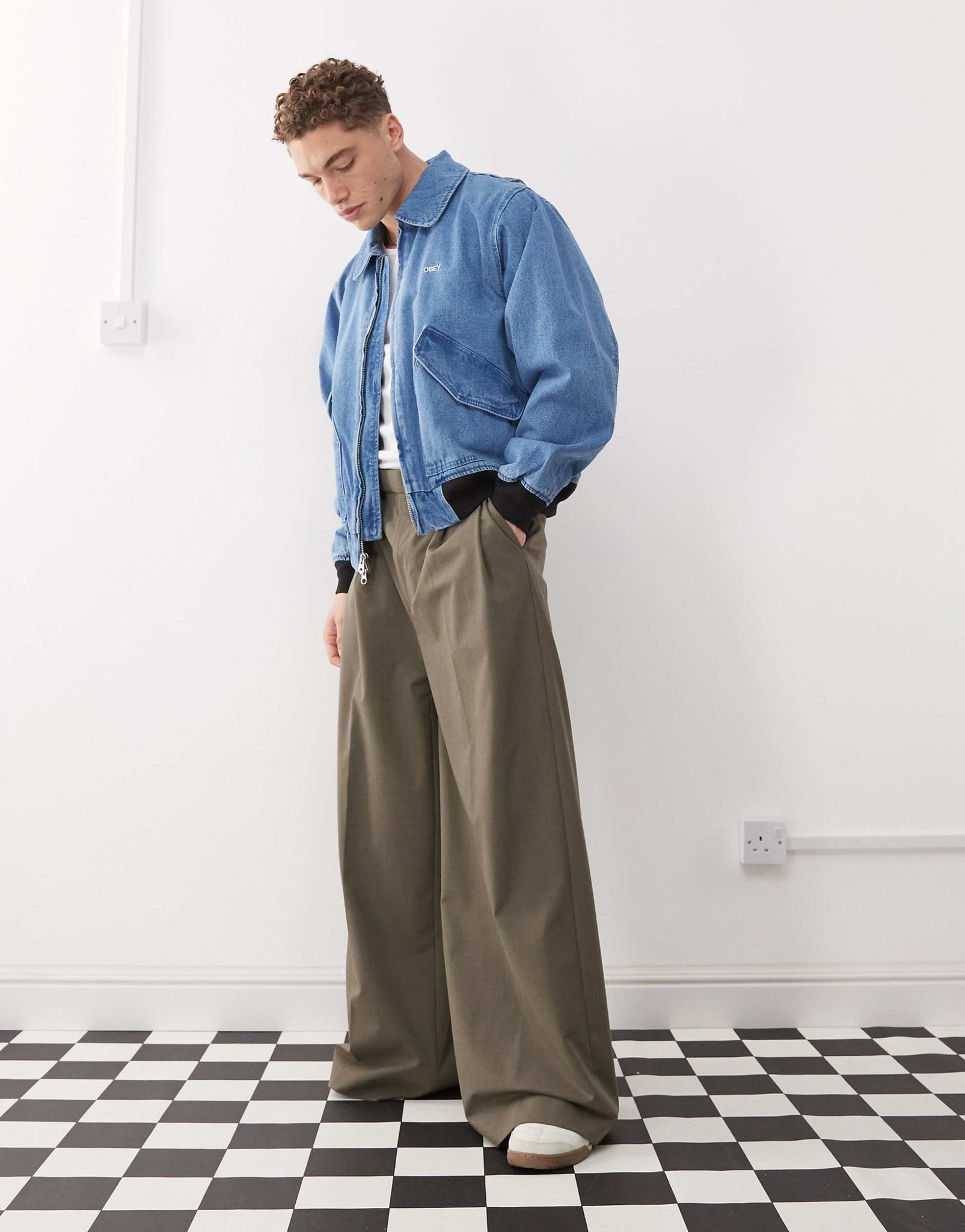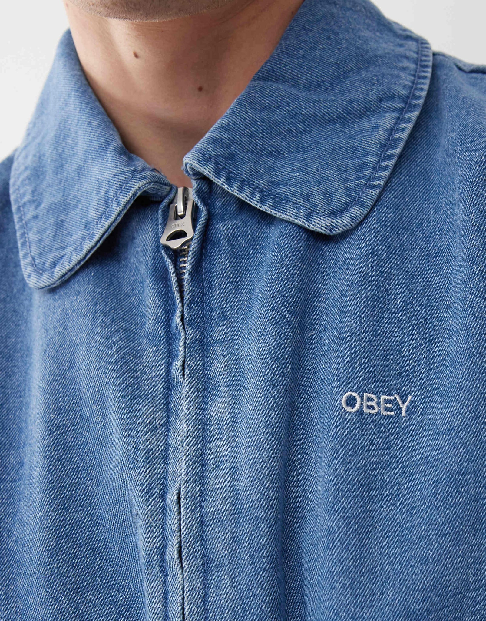 Obey denim bomber jacket light indigo