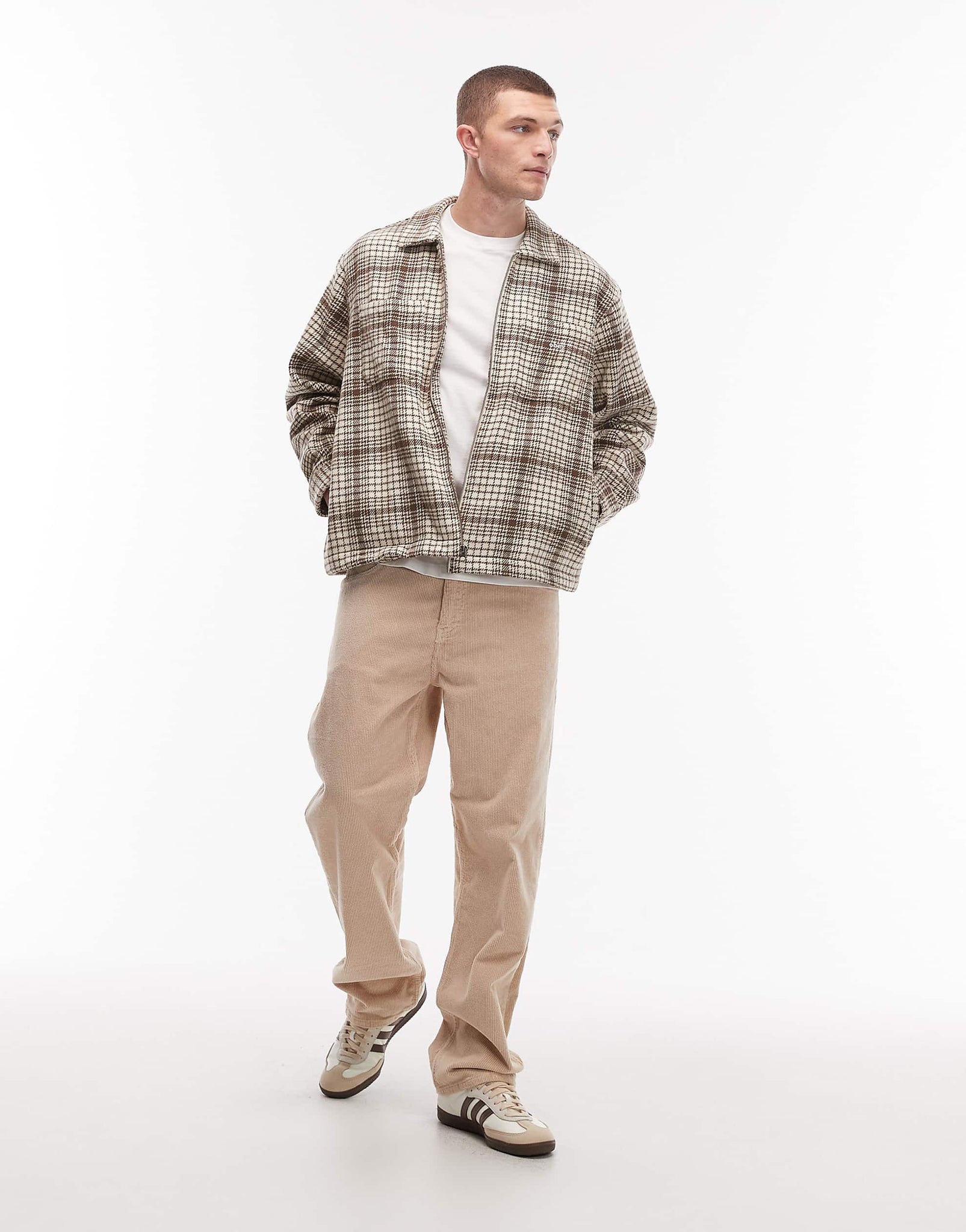 Obey parker flannel zip up shirt jacket beige