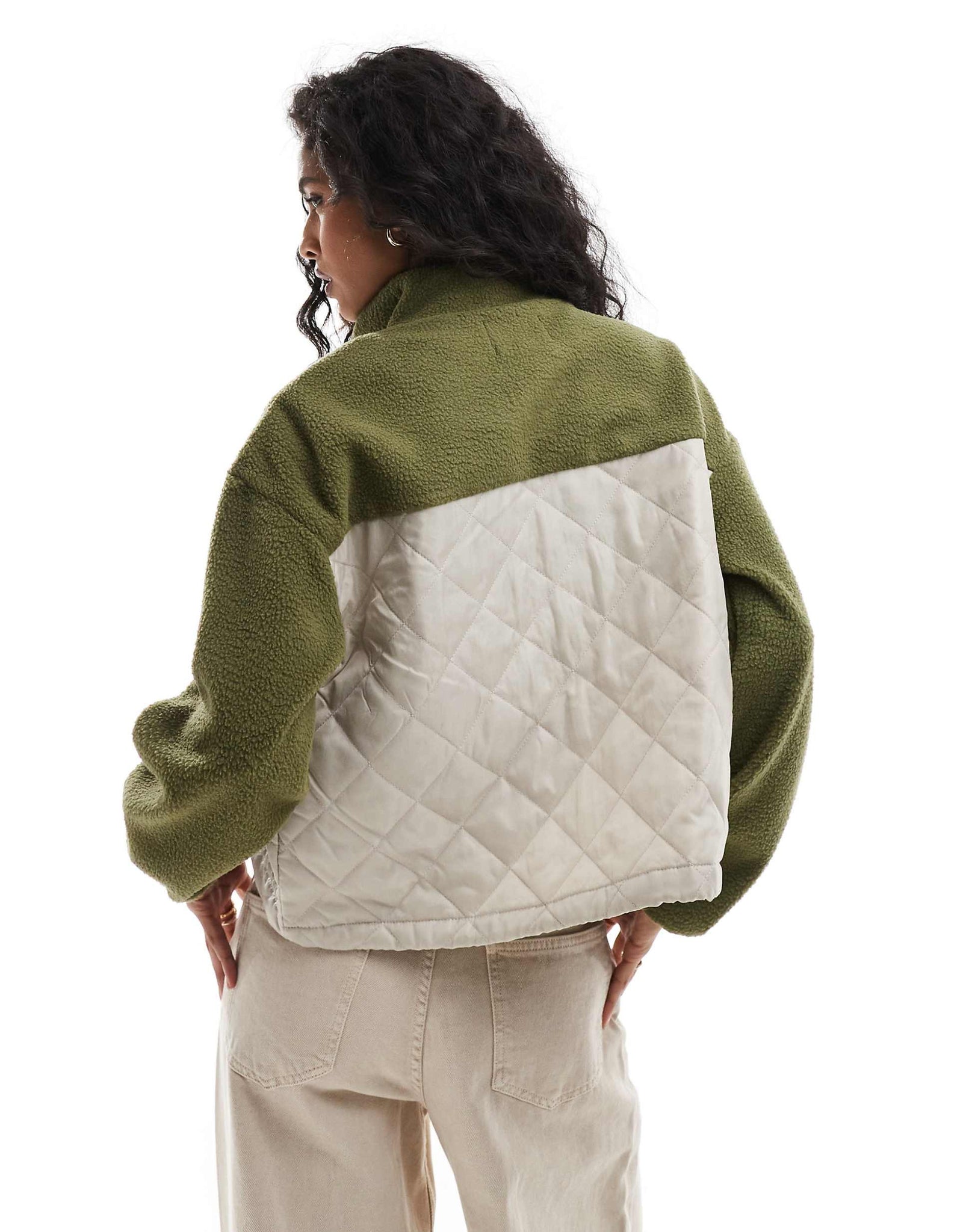ONLY teddy fleece jacket pocket khaki cream