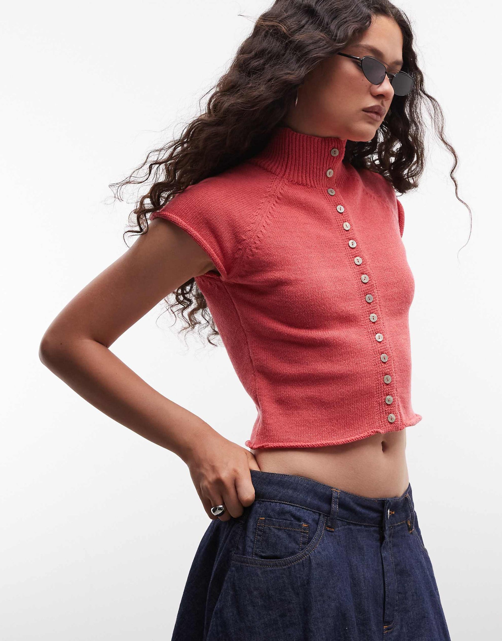 Reclaimed Vintage button through tank raspberry