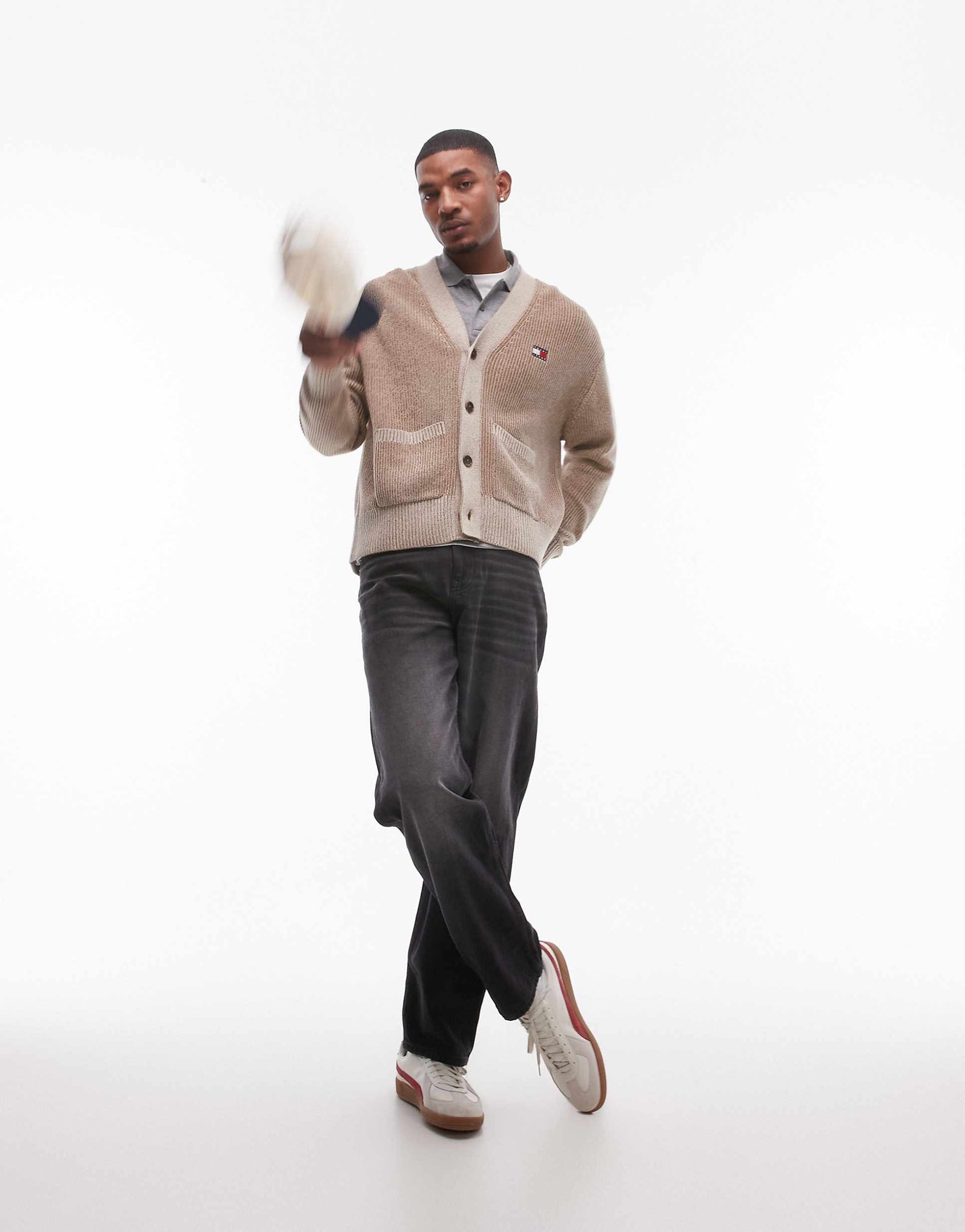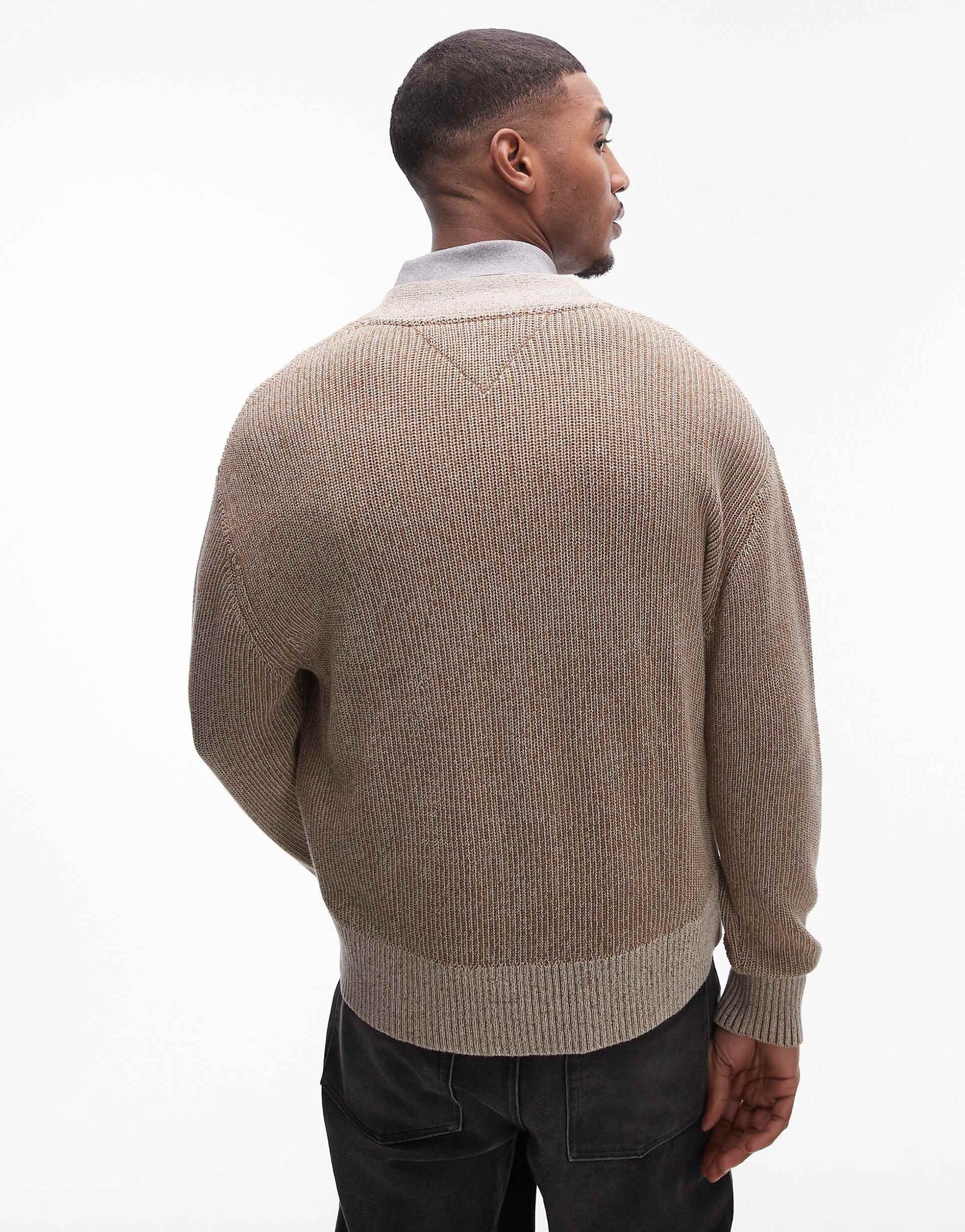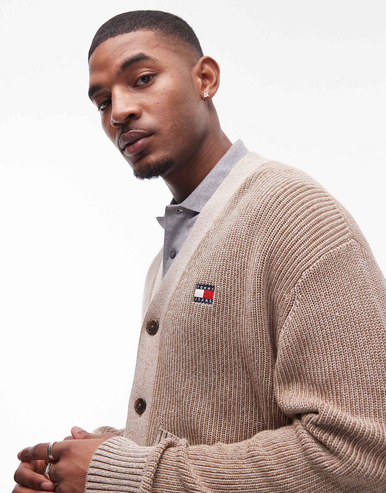 Tommy Jeans badge logo knitted two tone cardigan brown