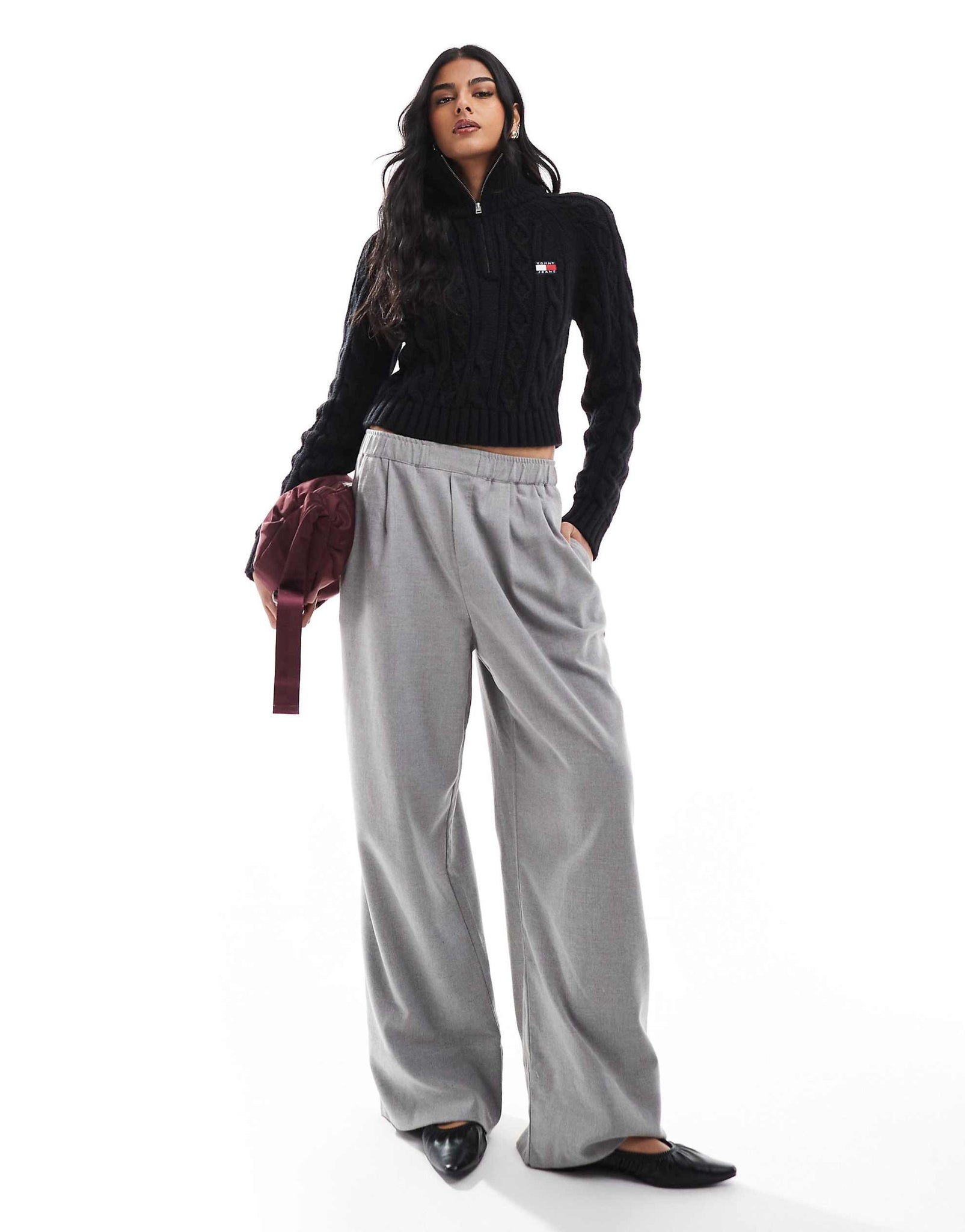 Tommy Jeans cable knit 1/4 jumper black