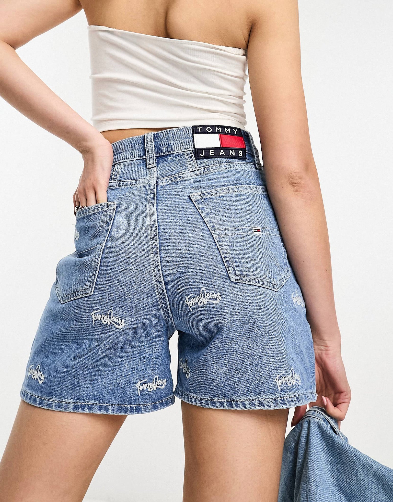 Tommy Jeans critter print mom denim short mid wash