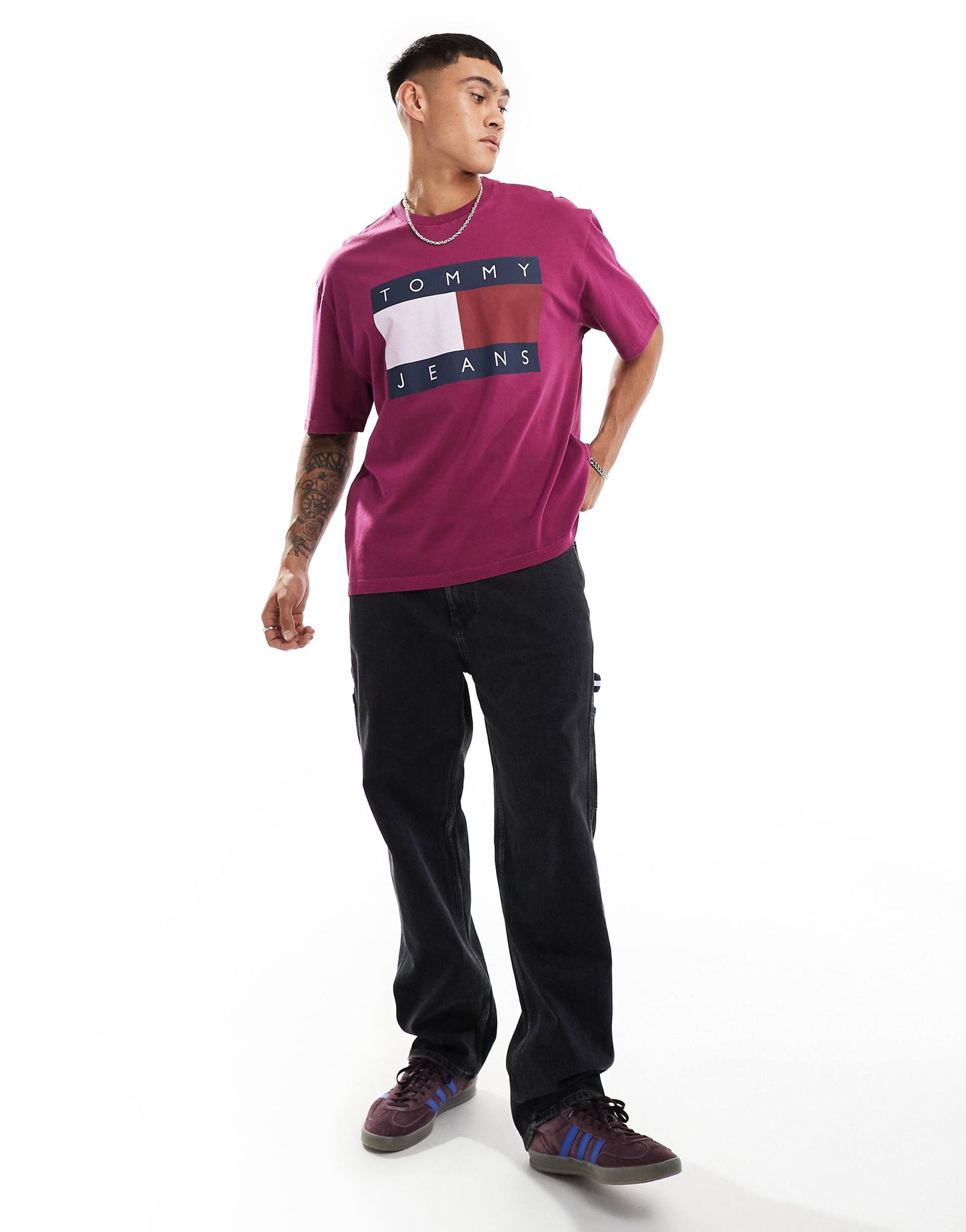 Tommy Jeans large flag logo t-shirt fuchsia purple