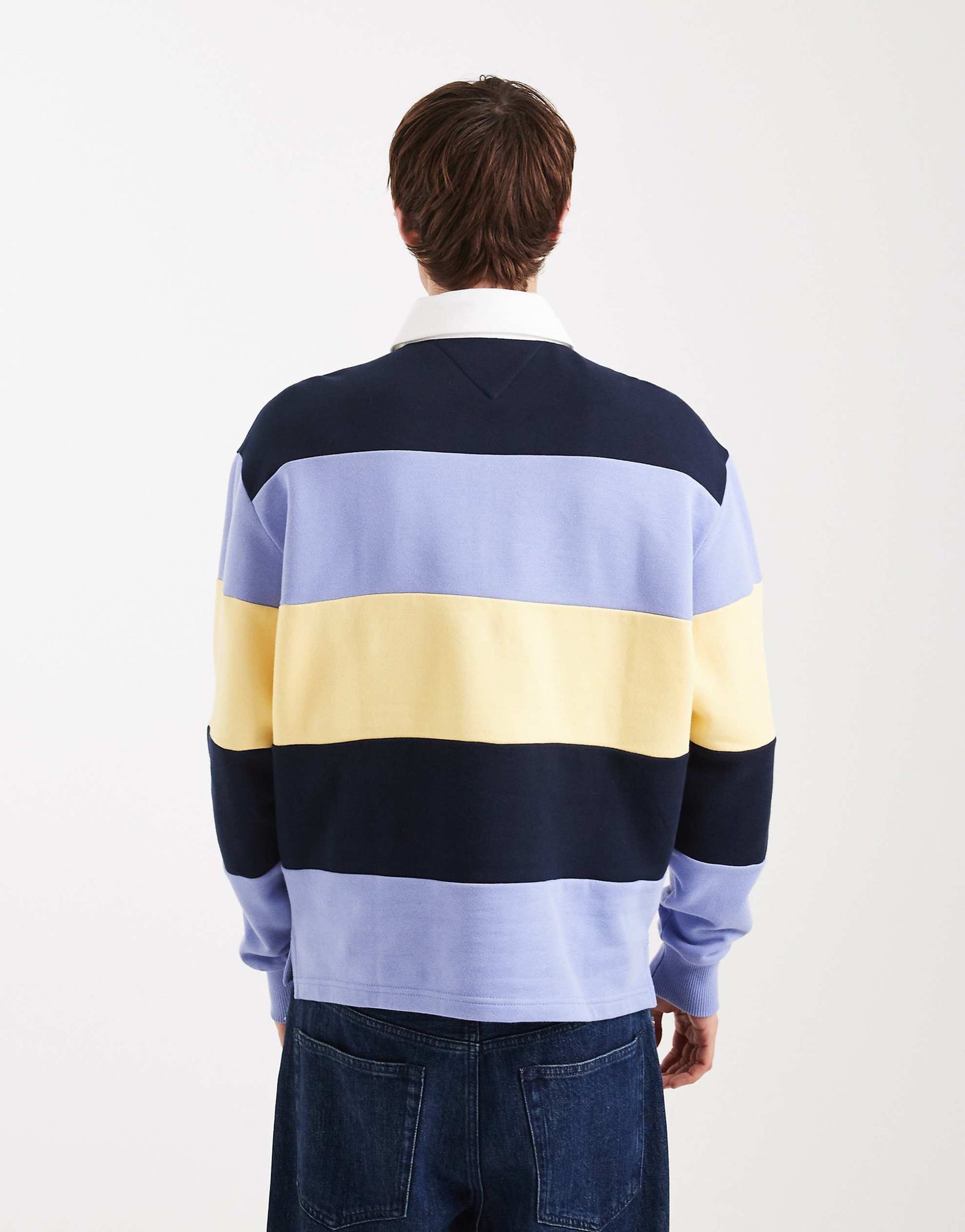 Tommy Jeans relaxed striped rugby sweater navy lilac yellow