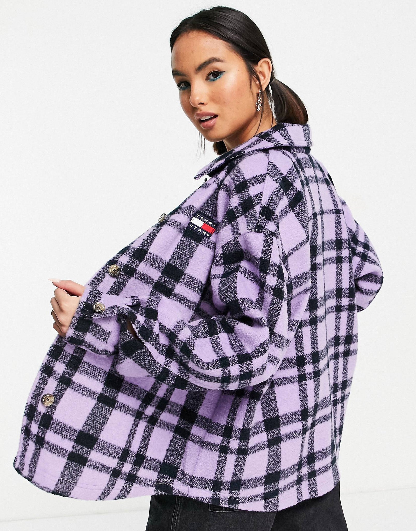 Tommy Jeans shacket lilac plaid