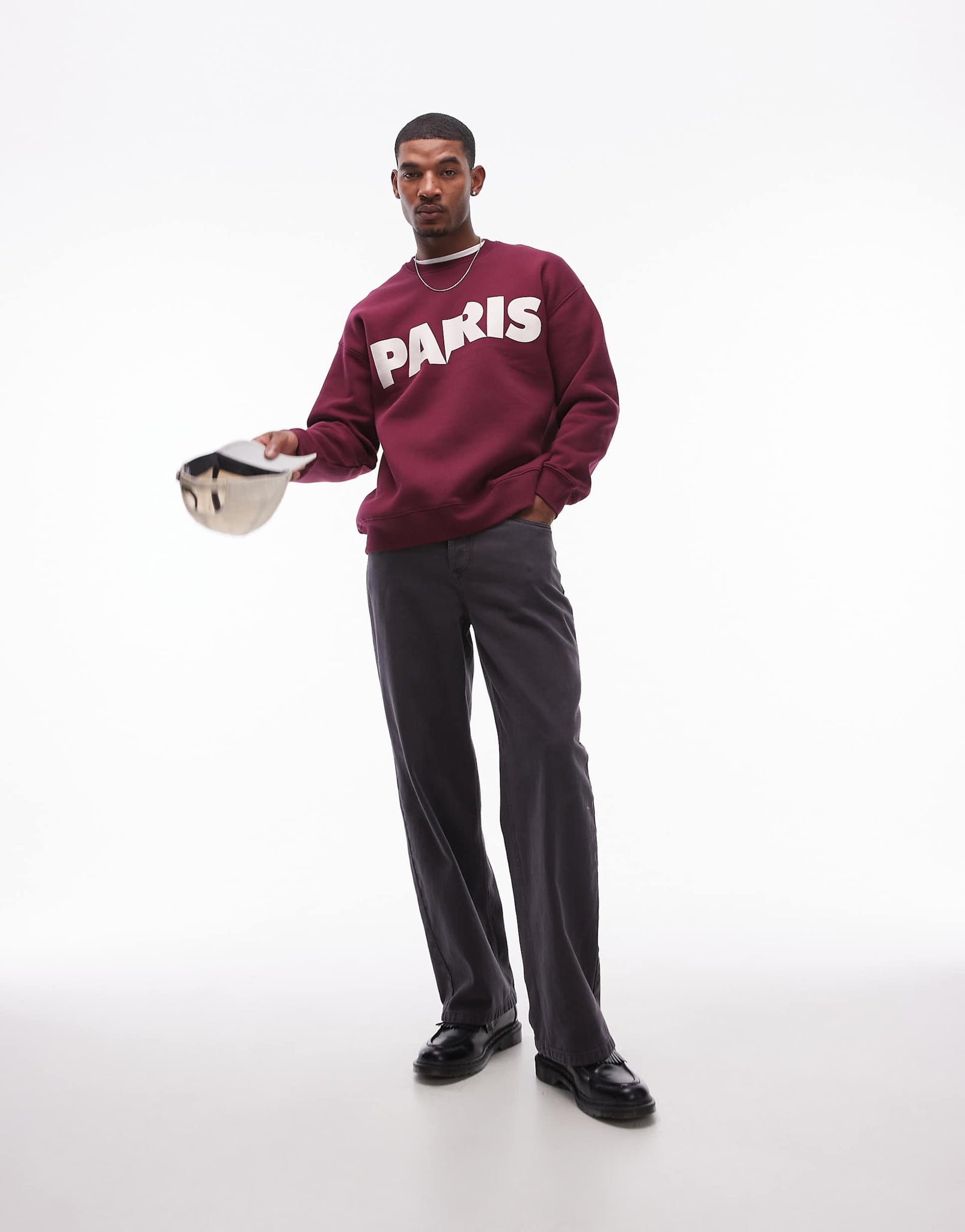 Topman oversized fit sweatshirt Paris burgundy