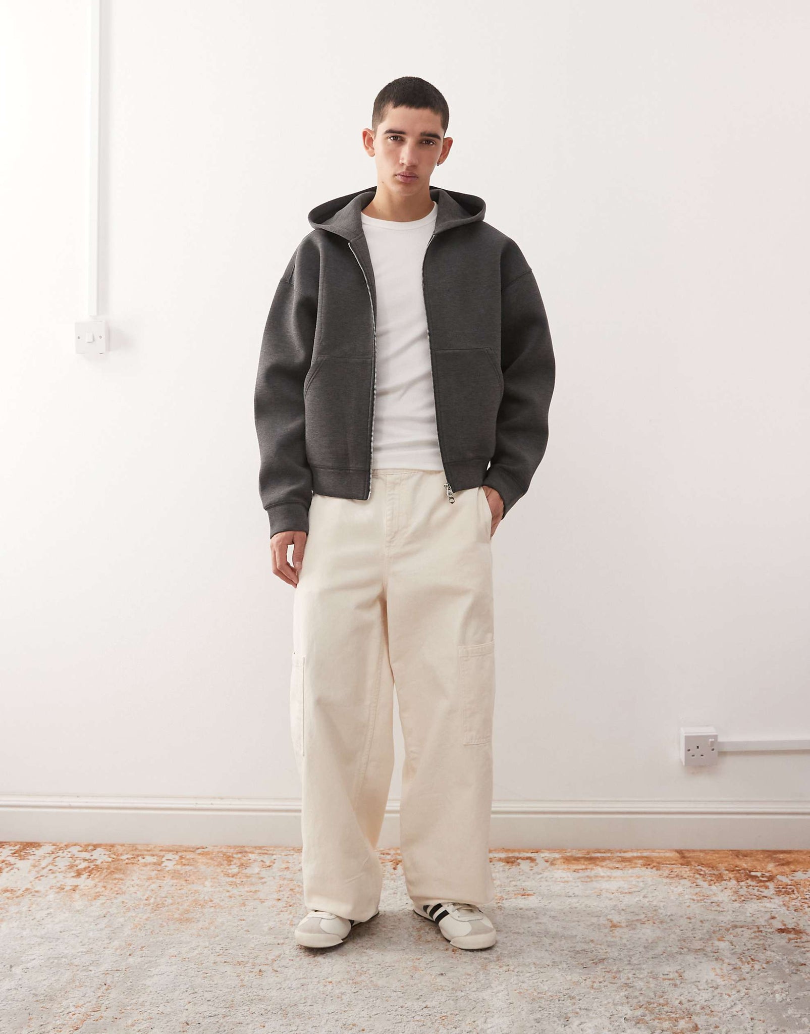 Weekday Simon zip hoodie dark grey