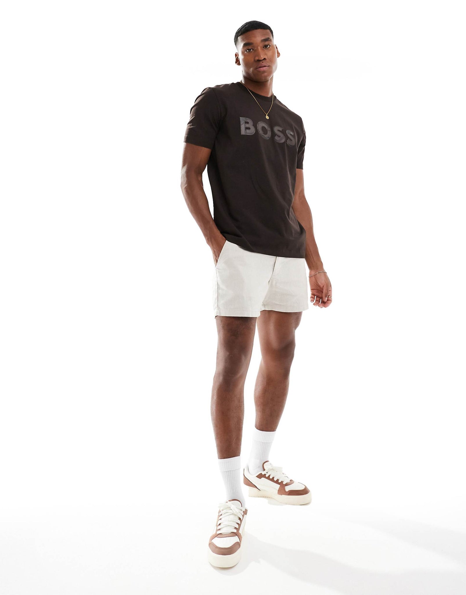 BOSS GREEN tee jagged t-shirt dark brown applique