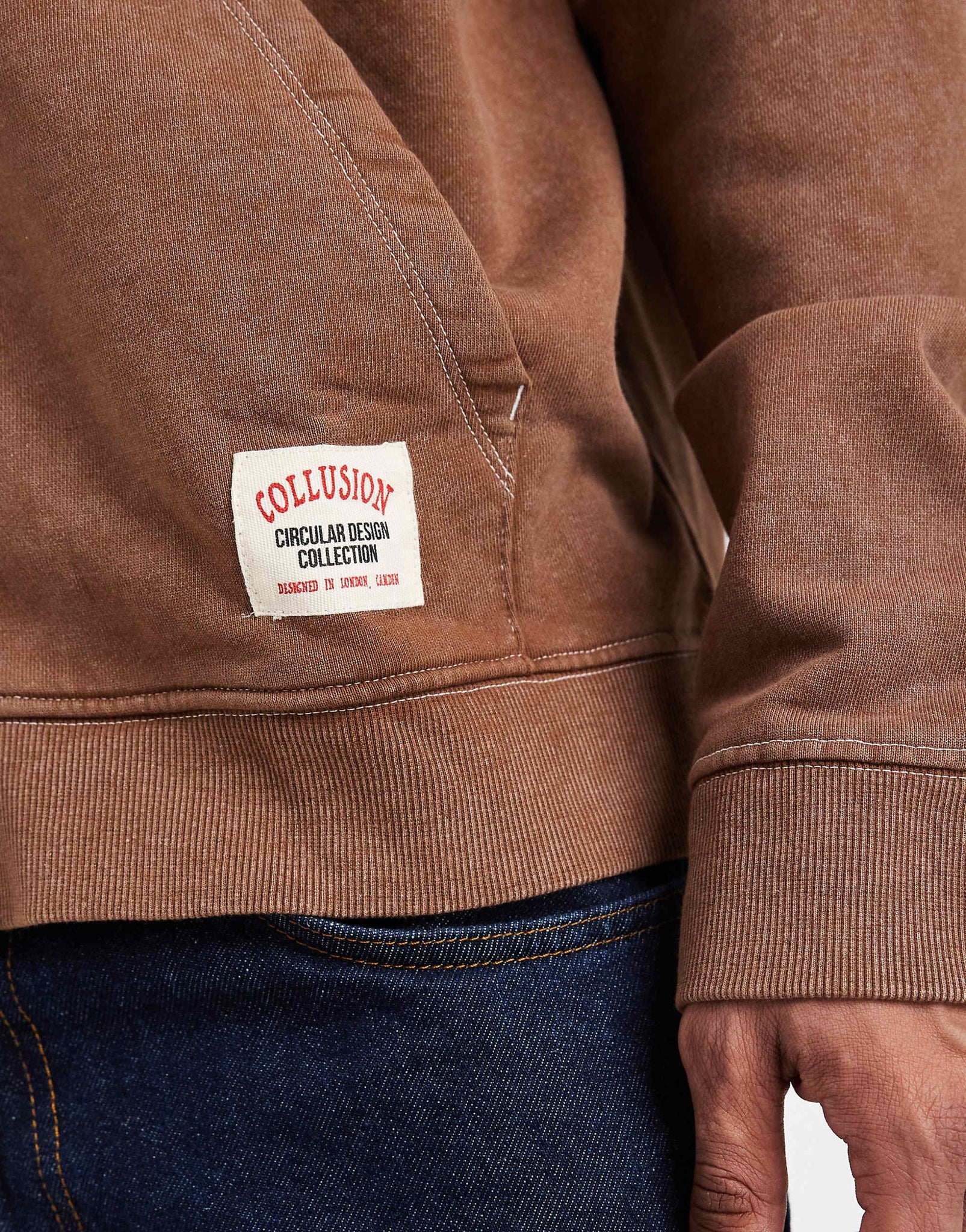 COLLUSION Circular Design Collection Unisex heavyweight boxy zip hoodie washed brown - BROWN