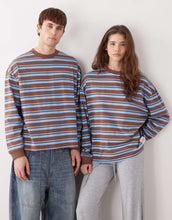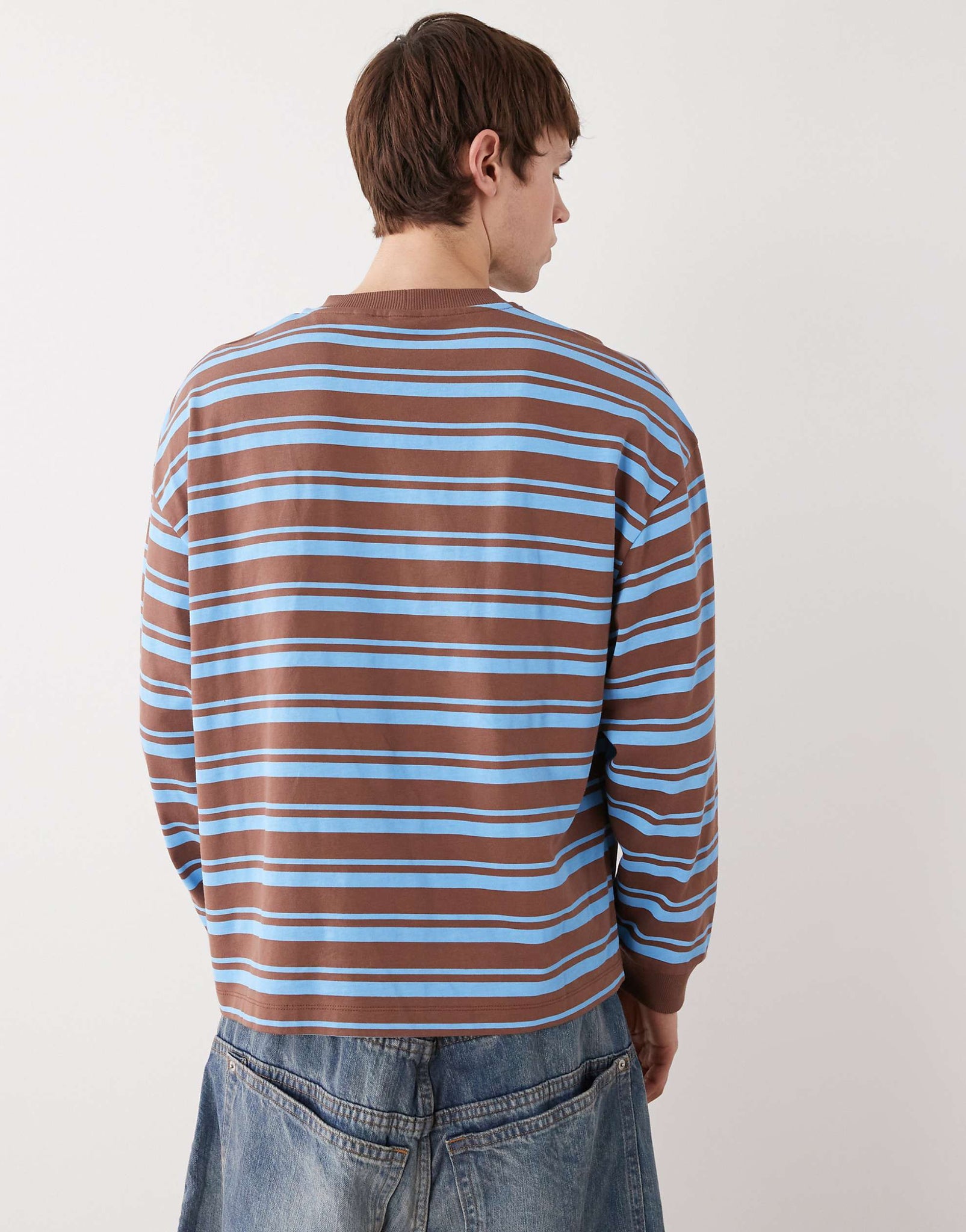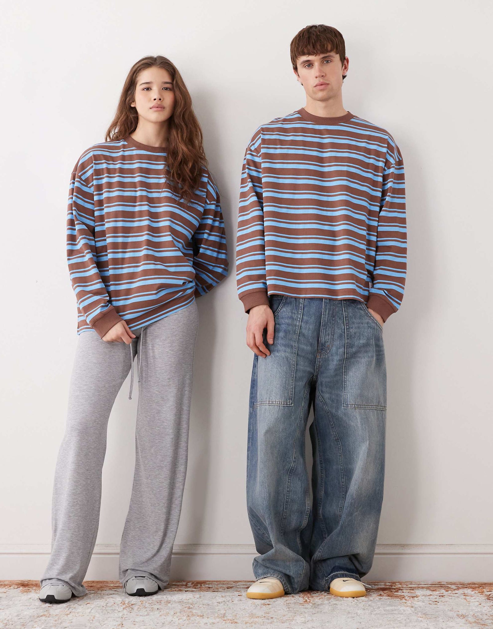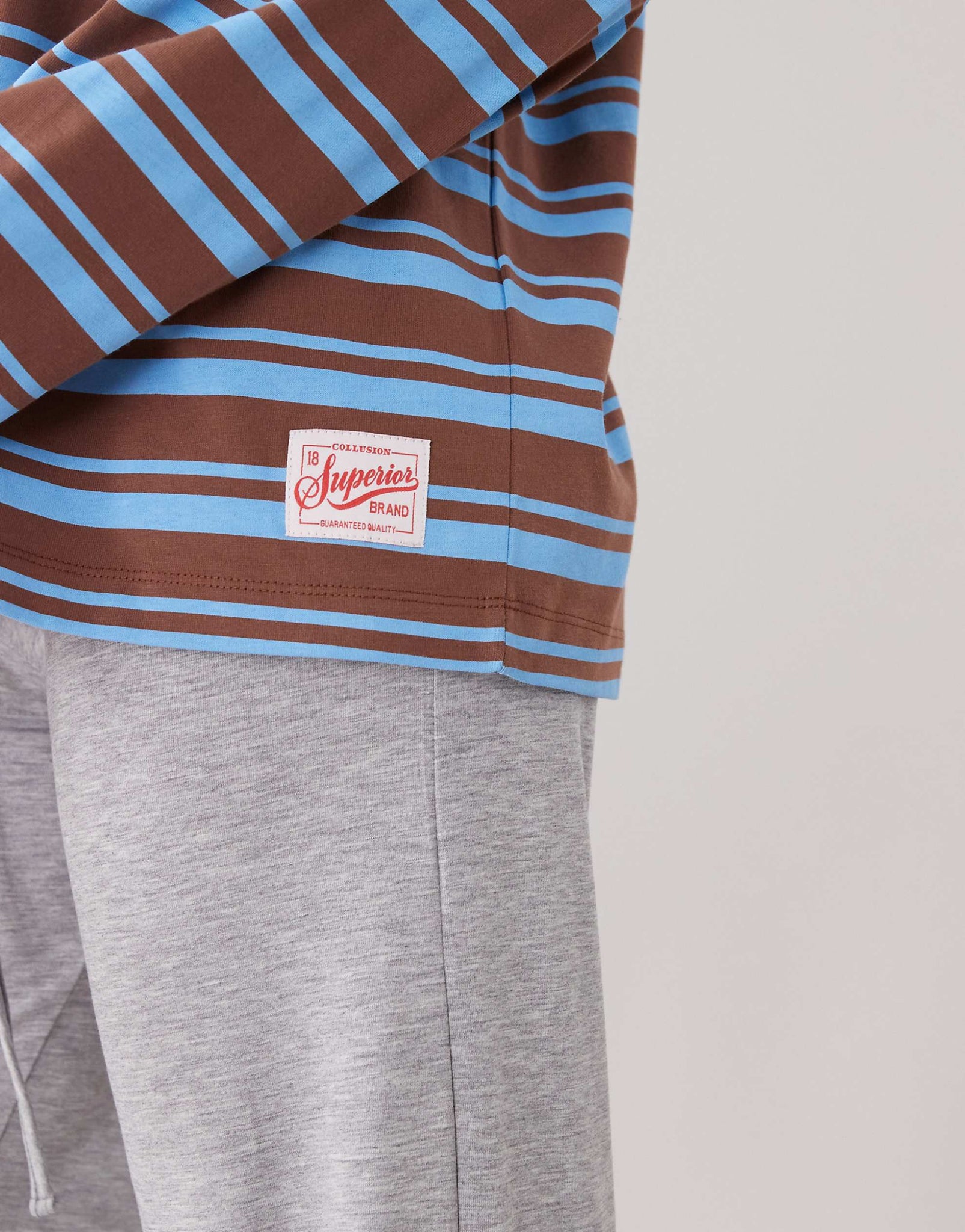 COLLUSION Unisex boxy stripe t-shirt in brown blue