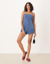 DESIGN denim square neck playsuit bromo wash