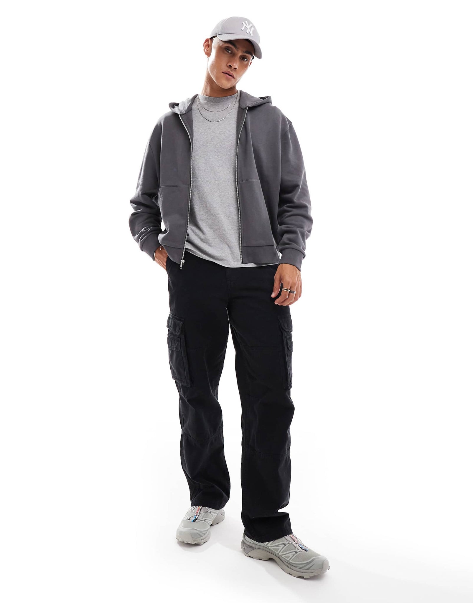 DESIGN essential boxy oversized zip through hoodie charcoal