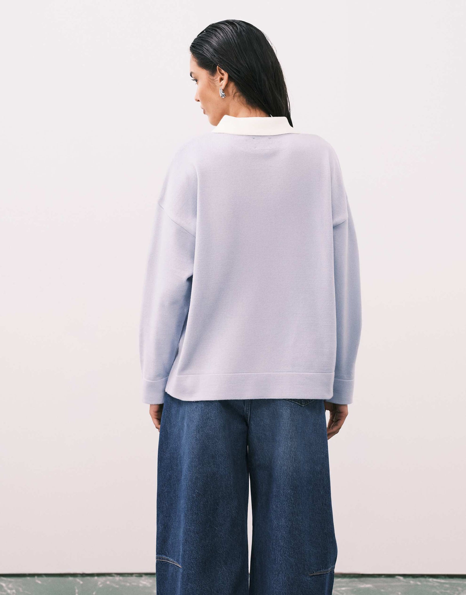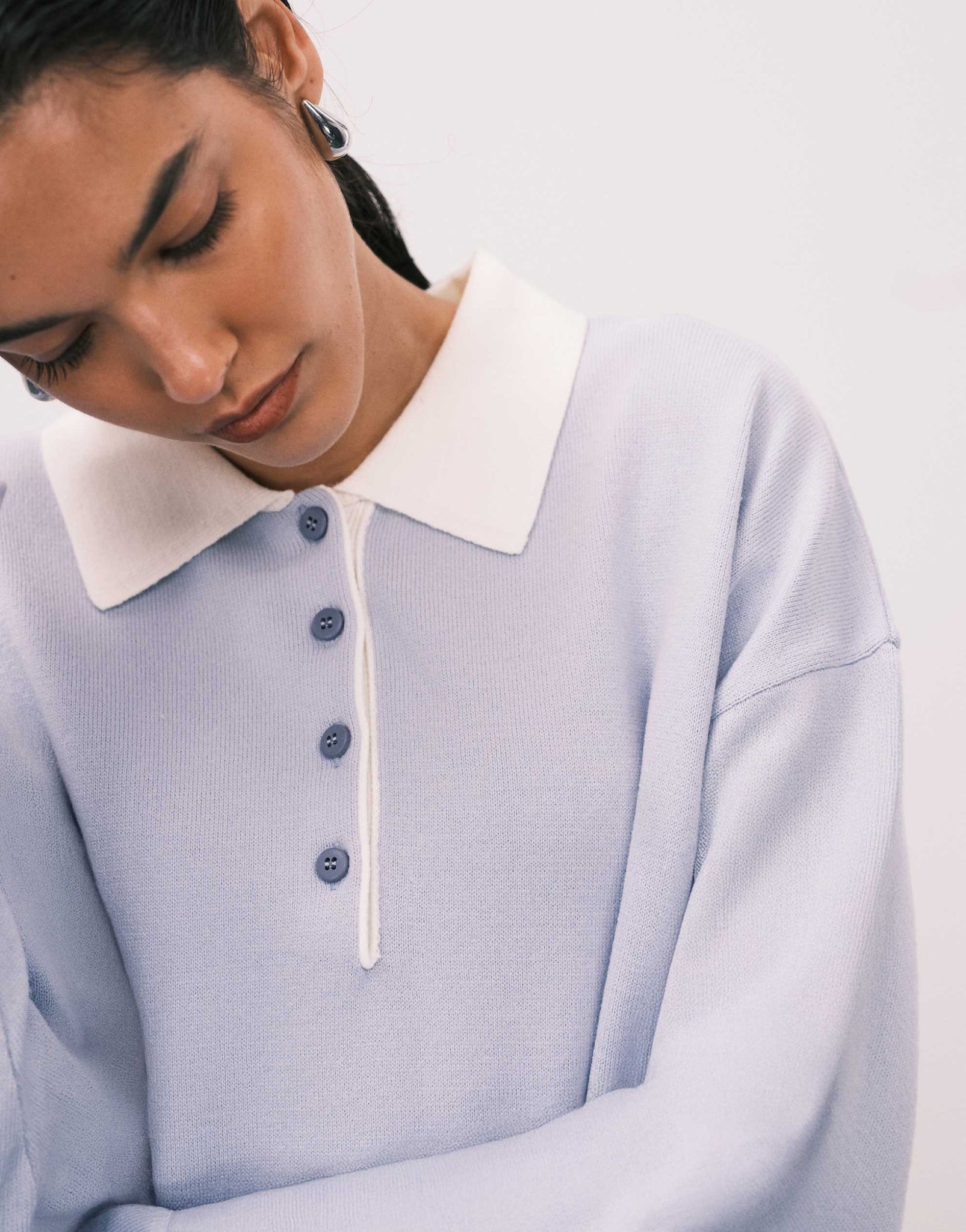 DESIGN fine knit polo light blue