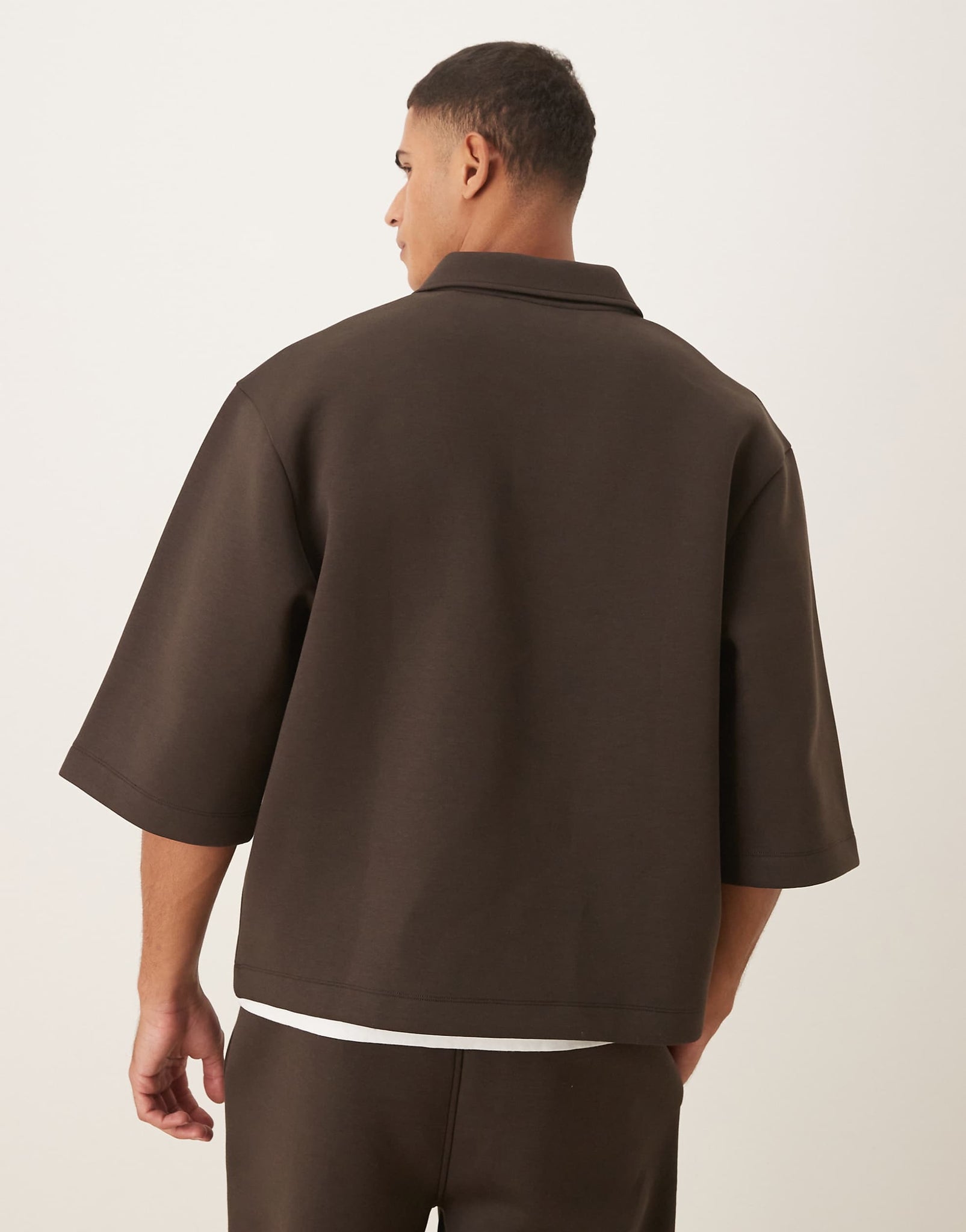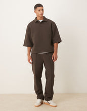 DESIGN oversized 3/4 sleeve polo sweatshirt brown