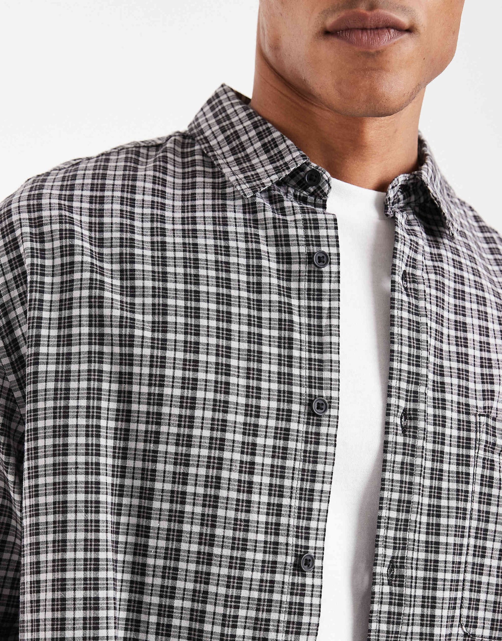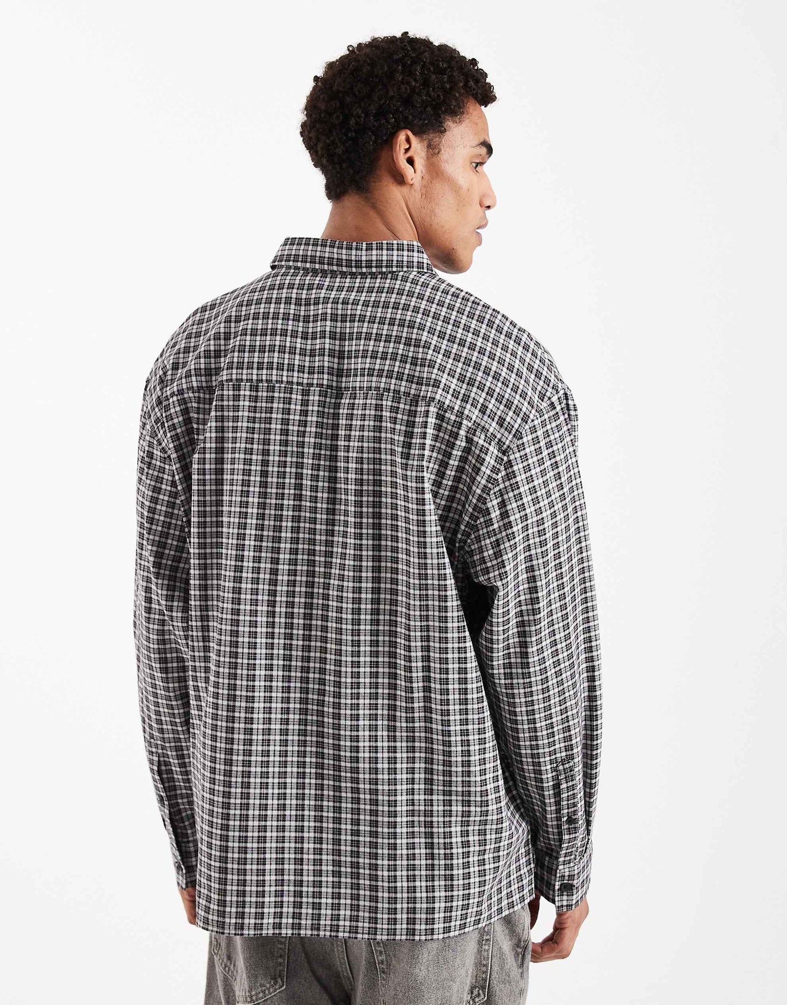 DESIGN oversized dad checked shirt black