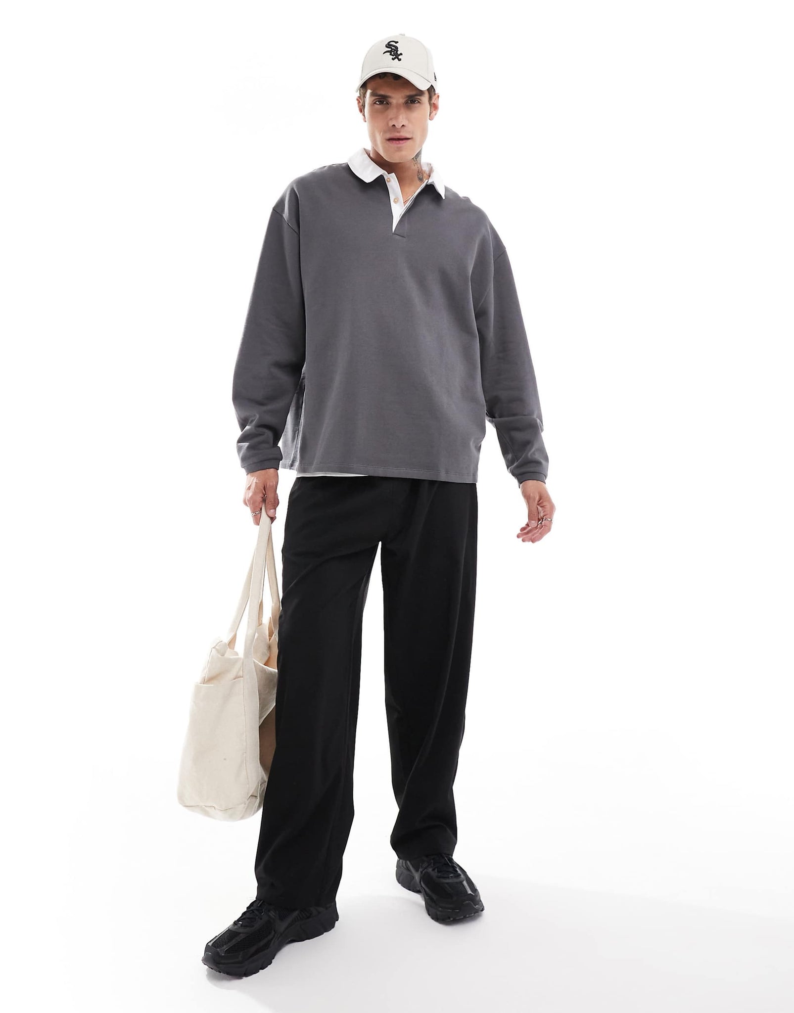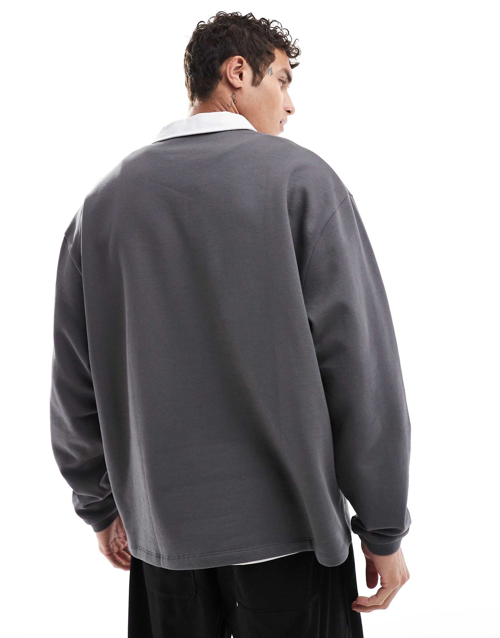 DESIGN oversized rugby polo sweatshirt charcoal