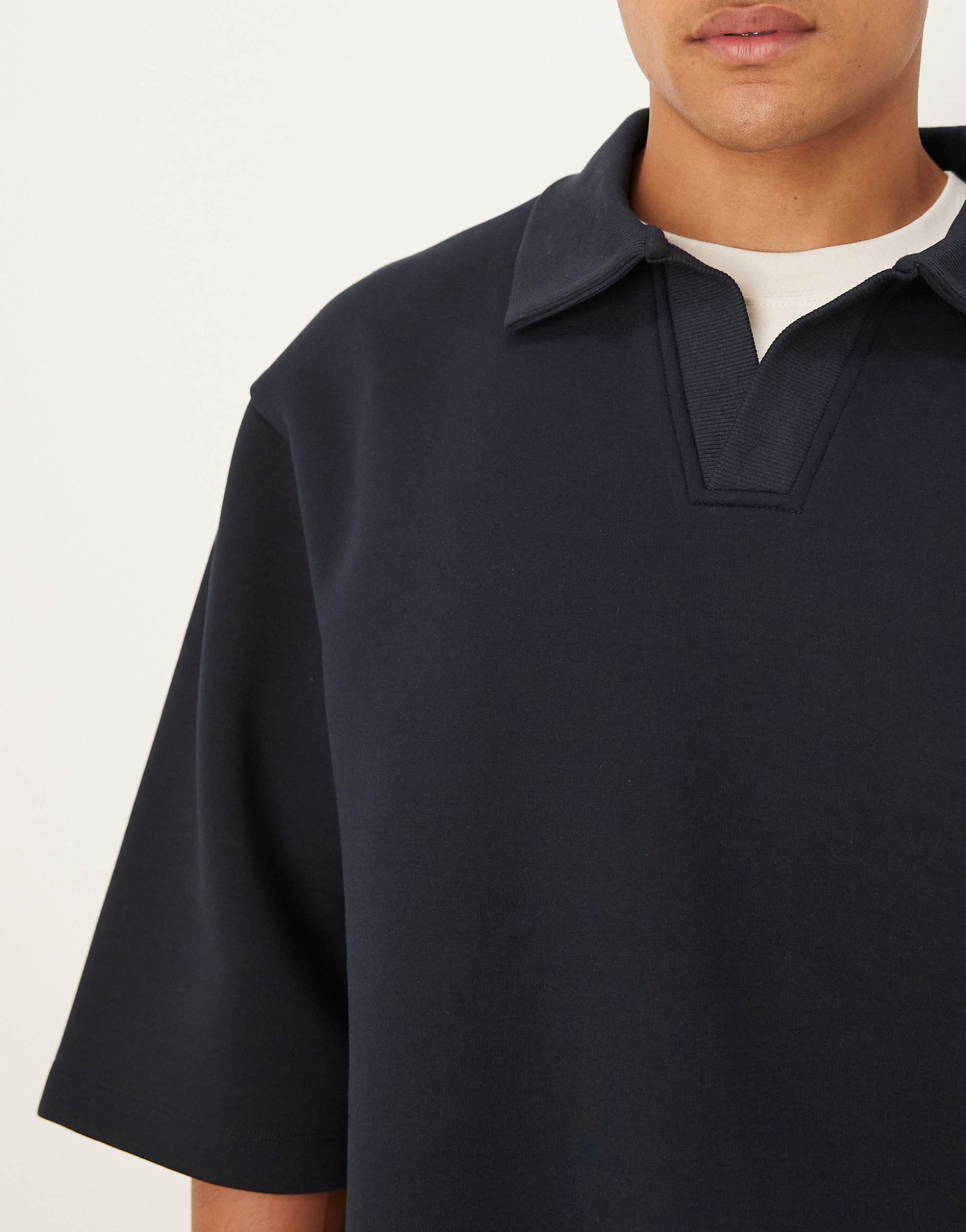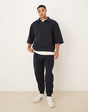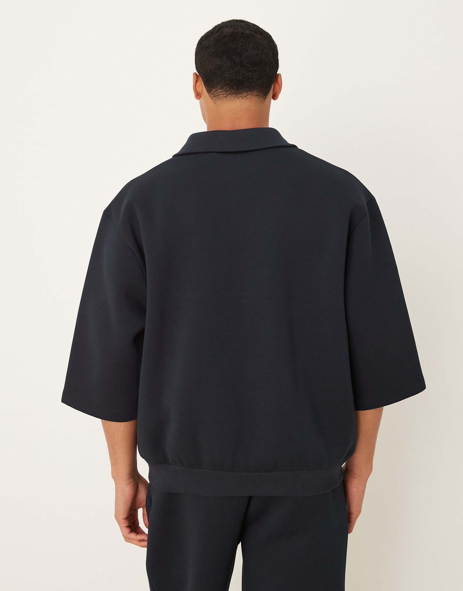DESIGN oversized scuba-style fabric polo sweatshirt navy