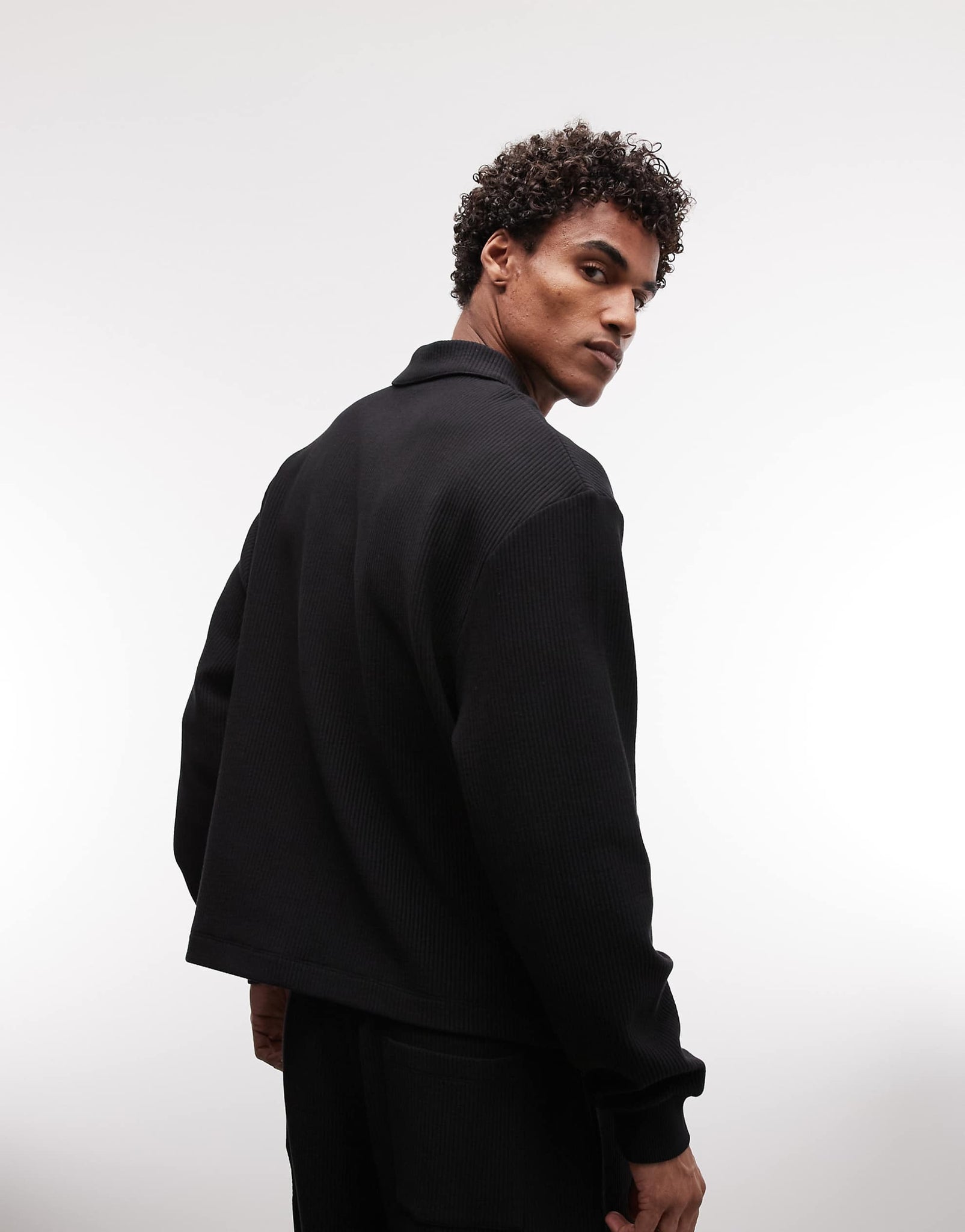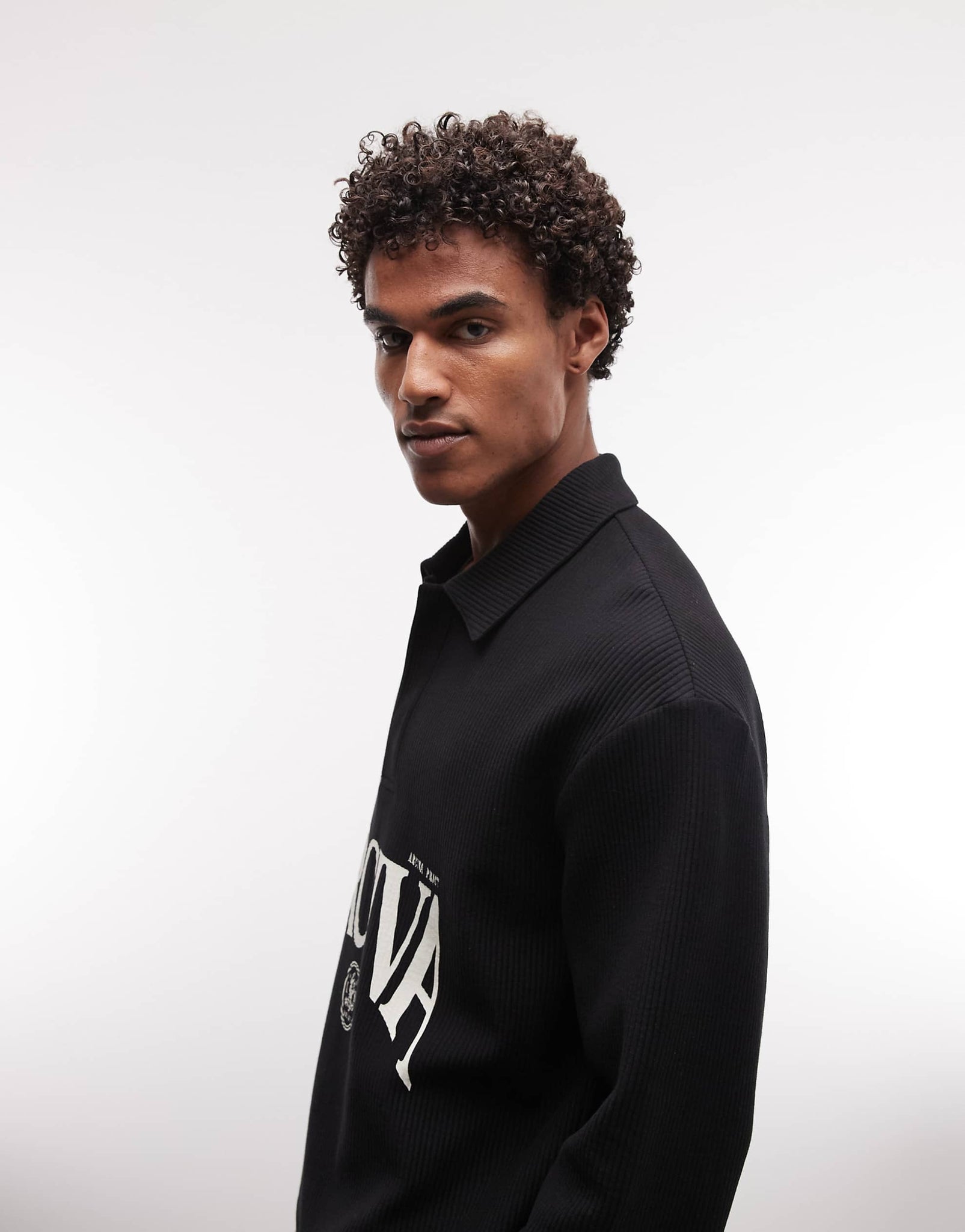 DESIGN relaxed boxy ottoman textured polo text graphic black